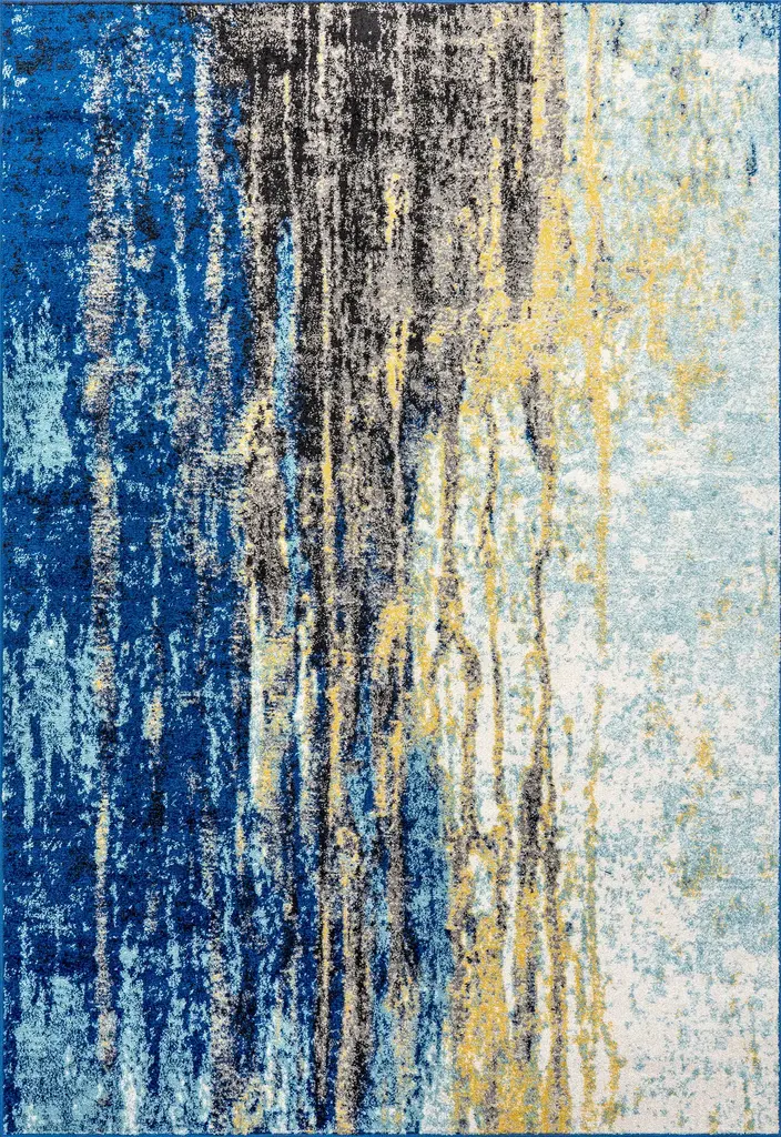 Luxe Weavers Modern Abstract Blue Area Rug is machine-woven from durable polypropylene. Stain resistant rugs with non-shedding fibers and a creative abstract pattern. It has a medium half inch thickness that adds warmth to your hardwood floors. Shades of blue, cream, gray, and hints of gold, lend a luxurious look to your home. This modern rug with jute backing is anti-dust, dirt-resistant, and safe for kids. Enjoy the soft texture and comfortable feel on playroom floors and bedrooms. Easy cleaning and able to withstand heavy foot traffic. Vacuum with no beater bar or gently spot clean with mild carpet cleaner.
