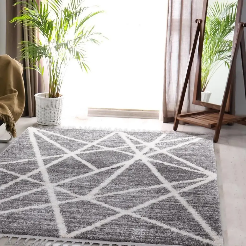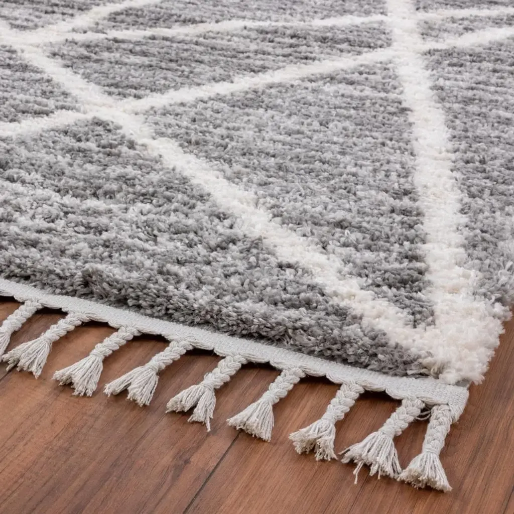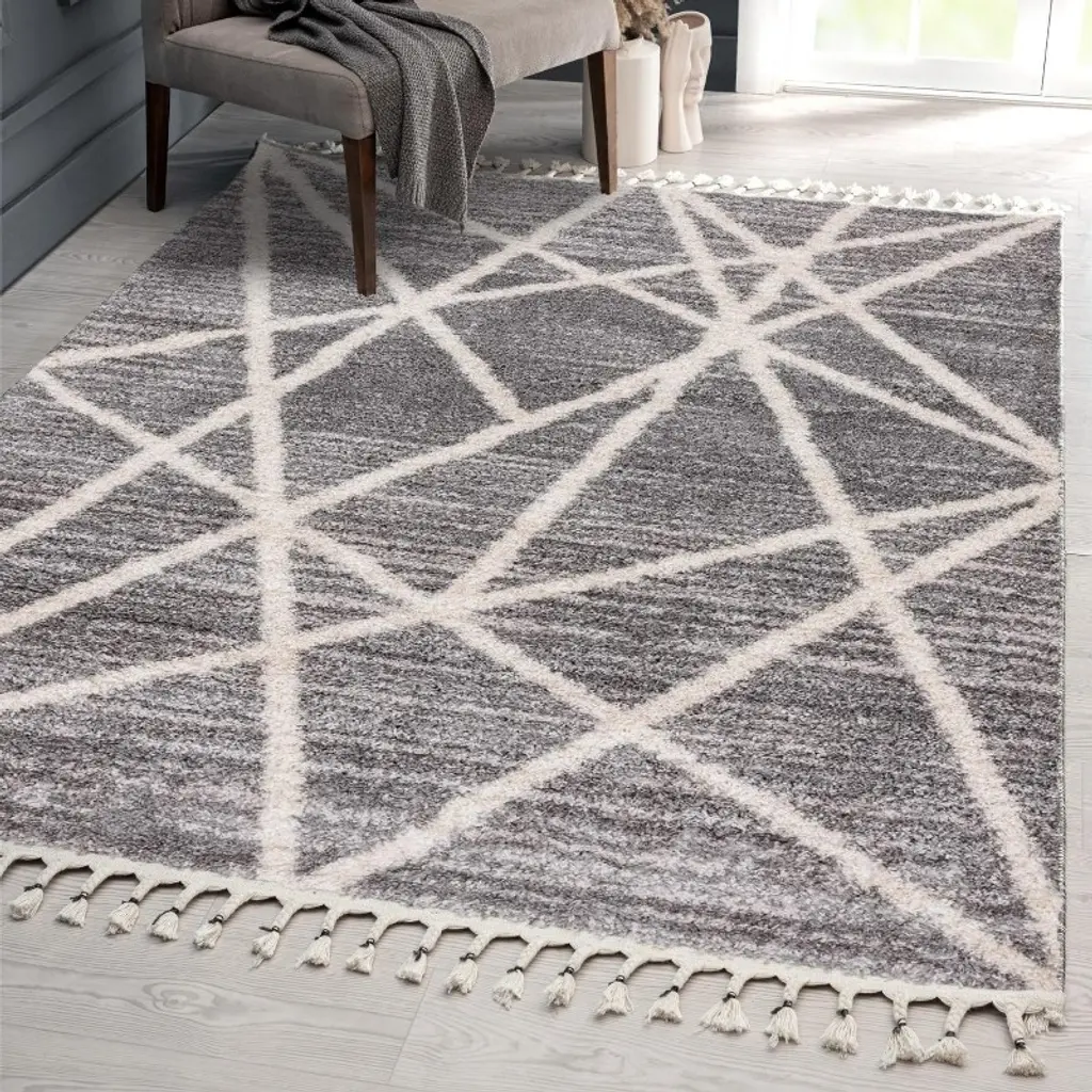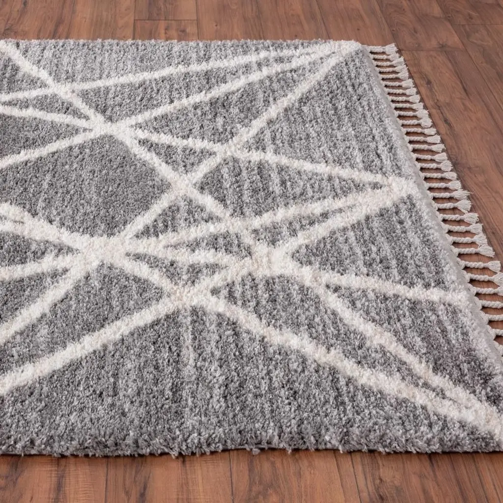 Luxe Weavers Geometric Fringed Shag Gray 8X10 Indoor Area Rug