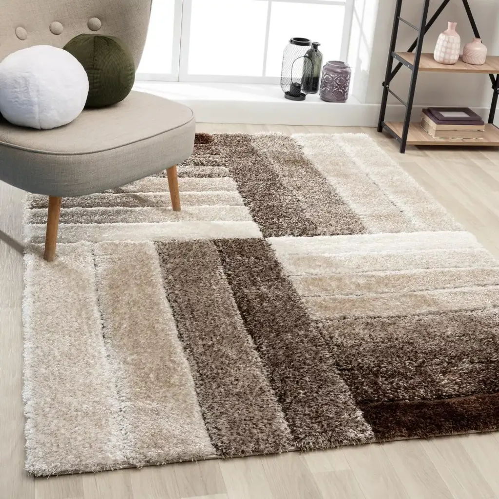 Luxe Weavers Lantanas Shag Geometric Area Rug, Modern, Stain Resistant, Plush Indoor Rug