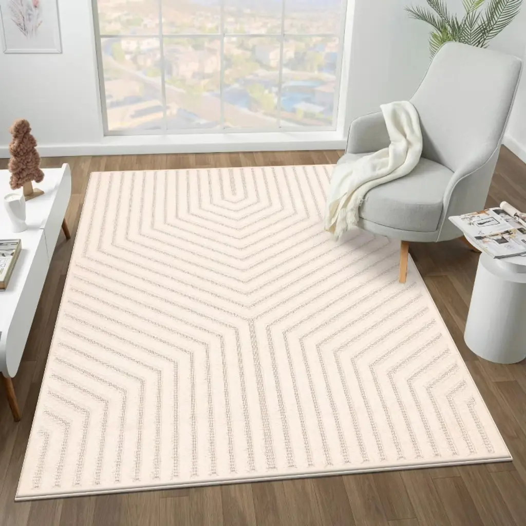 Luxe Weavers Modern Geometric Cream 4X5 Indoor Area Rug Neutral Carpet