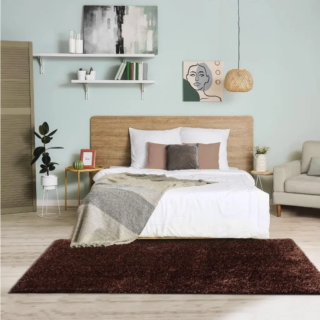 Luxe Weavers Plush Collection Brown 5X7 Modern Shag Solid Indoor Area Rug