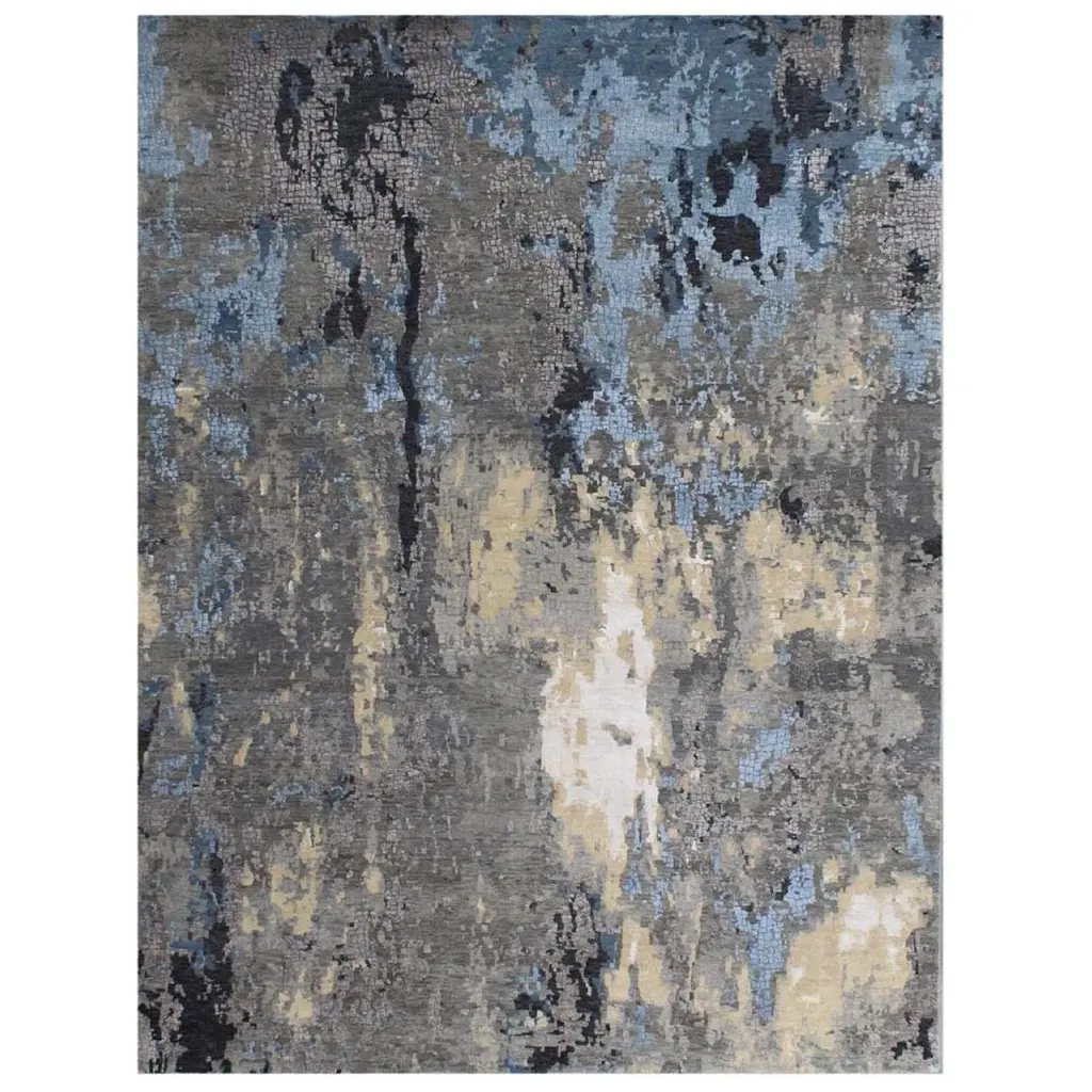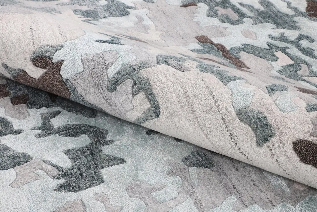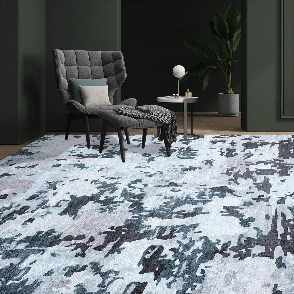 Make a room sit up with these contemporary style rugs. This modern Dark Gray and Light Blue, along with the use of wool and viscose, creates a soft and subtle effect with a pattern that shimmers in the light. Measures: 6'x9'.