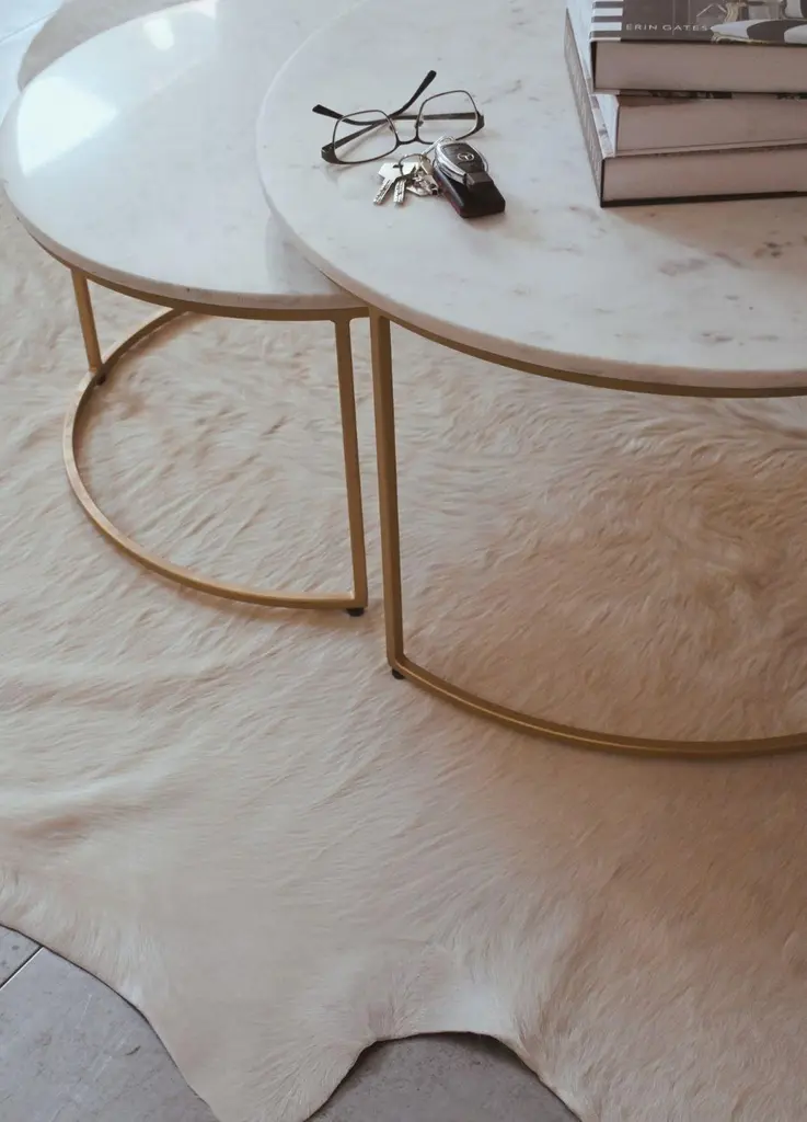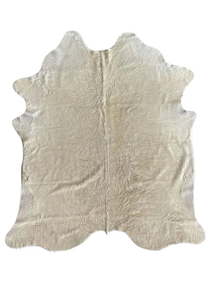 Timeless Elegance in Organic FormThis exquisite natural cowhide rug is a testament to understated luxury and organic beauty. Ethically sourced from Brazil and hand-selected for its exceptional quality, each hide displays a soft ivory tone with gentle beige variations—highlighting the authenticity and singularity of the material.All of our hides are XL in size, averaging approximately 7 x 8 feet, offering generous coverage and visual impact. Due to the natural origin of the product, no two pieces are identical. Slight variations in shape, pattern, and tone are to be expected and celebrated, as they reflect the uniqueness of each animal and reinforce the one-of-a-kind character of every rug.The hair-on-hide finish retains the tactile richness of the natural texture, while the organic silhouette introduces softness to linear spaces. Ideal for modern, Scandinavian, or transitional interiors, this piece grounds any space with warmth and subtle sophistication.Whether layered under a sculptural coffee table or placed solo to define a reading nook or living area, this cowhide rug adds texture, depth, and quiet luxury.DetailsType: Hair-on-hide cowhide rugOrigin: BrazilMaterial: 100% natural bovine hideDimensions: Approx. 7 x 8 ft (213 x 244 cm) – XL sizingColor: Natural ivory with beige undertonesCondition: New and unusedBacking: Natural suede underside (non-slip)Sustainability: Ethically sourced from certified Brazilian tanneriesStyle: Organic modern, Scandinavian, transitional, contemporaryVariations: Each rug varies slightly in shape and tone due to its natural originStyling NotesA perfect choice for softening concrete, anchoring neutral spaces, or layering over larger rugs for textural contrast. Works beautifully with boucle fabrics, marble surfaces, and brass accents—as seen in the styled setting.Shipping & HandlingShips rolled and carefully packaged. For international shipping, please inquire for estimated delivery times and handling.We will ship your rug from Miami, FL, USA