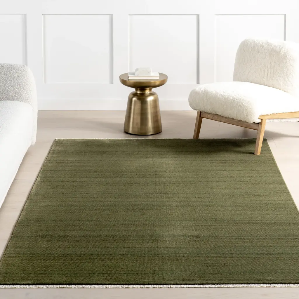 Lylah Solid Fringed Rug | Dark Sage - 5' X 7' 10"