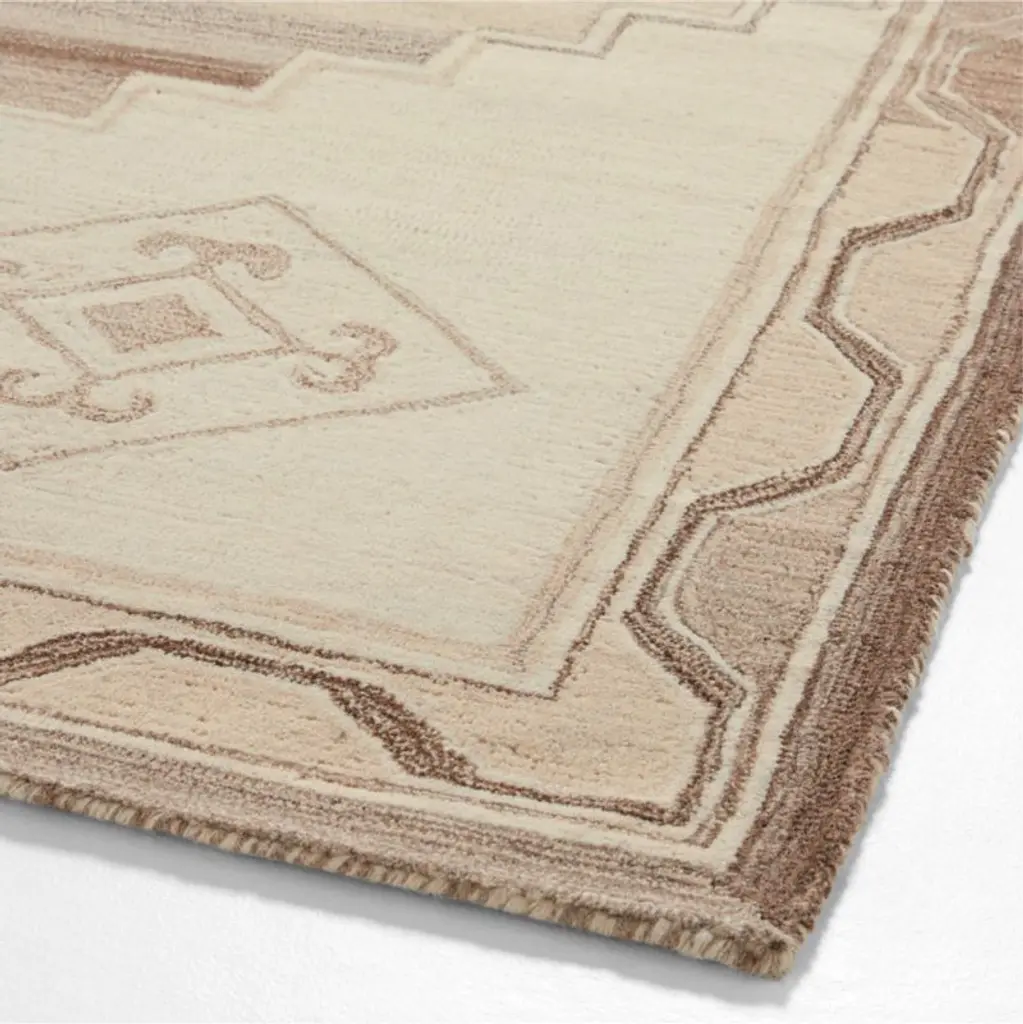Ombre neutrals update the traditional medallion rug for the modern home, reimagining the ornate design in an understated palette. Tonal bands in countless shades of beige shape the central motif, creating a fascinating op-art effect. Hand-tufted by skilled artisans, the wool-blend area rug stands up to high-traffic spots where its beauty and quality can be appreciated every day. Its serene, stunning presence provides an easy instant update to a living room or entryway.Try it on first. Because color representation may vary by screen, using a swatch is an easy way to see exactly how your favorite rugs will look in your home. Our rug swatches ship free and can be returned online or at any store for a full refund.6'x9' rugs and 8'x10' rugs can be ordered online and picked up in a store near you. It's fast, easy and free.For larger rugs, order online and arrange a convenient delivery or warehouse pickup.