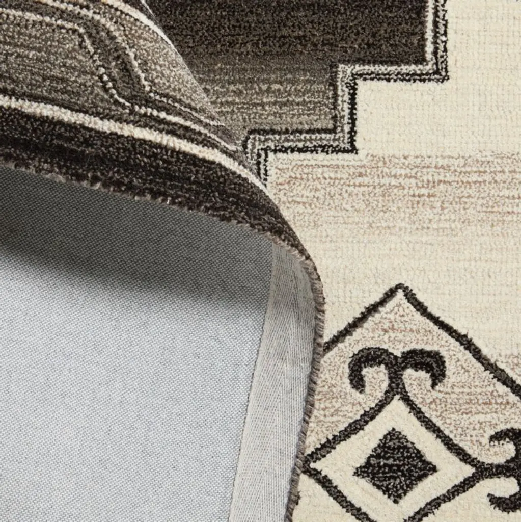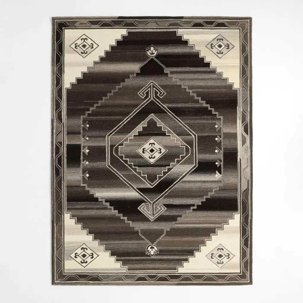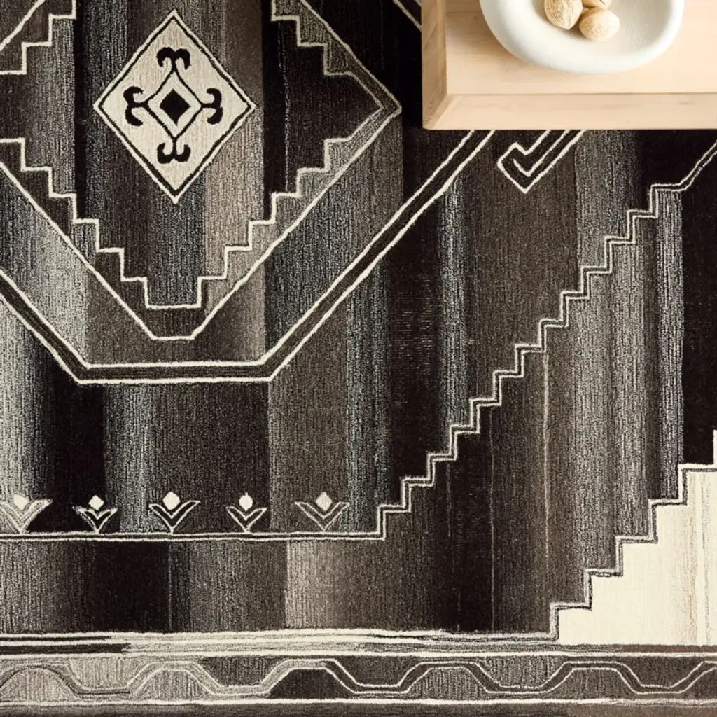 Ombre neutrals update the traditional medallion rug for the modern home, reimagining the ornate design in an understated palette. Tonal bands flowing from black to ivory shape the central motif, creating a fascinating op-art effect. Hand-tufted by skilled artisans, the wool-blend area rug stands up to high-traffic spots where its beauty and quality can be appreciated every day. Its dramatic presence provides an easy instant update to a dining room or entryway.Try it on first. Because color representation may vary by screen, using a swatch is an easy way to see exactly how your favorite rugs will look in your home. Our rug swatches ship free and can be returned online or at any store for a full refund.6'x9' rugs and 8'x10' rugs can be ordered online and picked up in a store near you. It's fast, easy and free.For larger rugs, order online and arrange a convenient delivery or warehouse pickup.