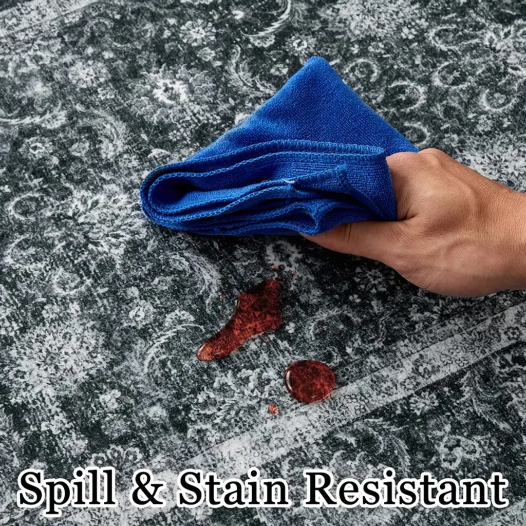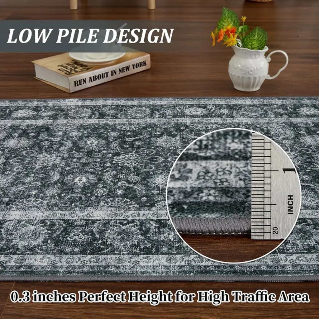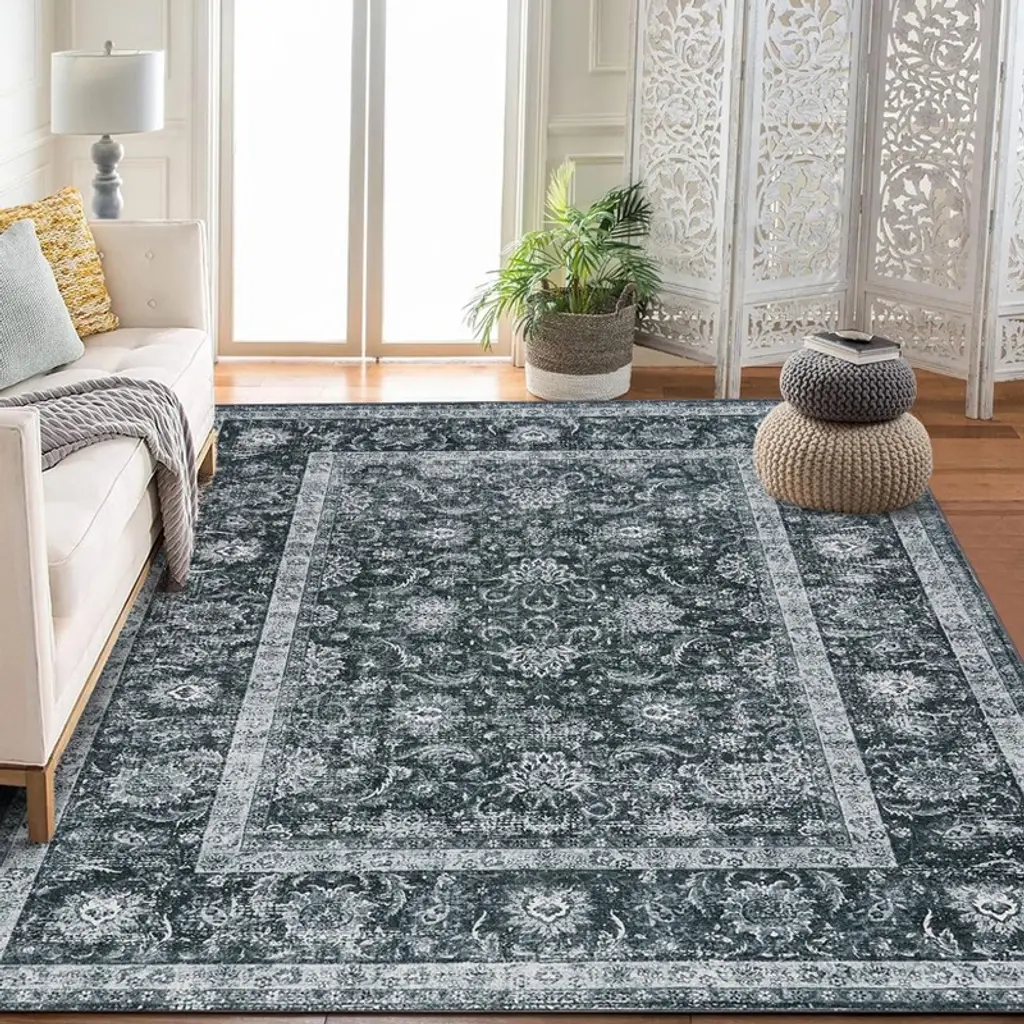 **Vintage Boho Rug - Ultra Thin Machine Washable Non-Shedding Traditional Floor Mat** **Product Description:** Enhance your space with this **exquisite vintage boho rug**, featuring a **distressed floral pattern** that blends timeless elegance with modern functionality. Crafted from **premium polyester fibers**, this **needle-punched rug** offers an **ultra-thin profile** that slides effortlessly under furniture while resisting dust, crumbs, and pet hair. The **machine-washable construction** and **stain-resistant surface** make cleaning effortless, while the **grippy dot backing** provides stability on most floors. Perfect for adding a **pop of bohemian charm** to living rooms, bedrooms, or kitchens, this rug combines **artistic design with everyday practicality**. ---### **Key Features:** 1. **Ultra-Thin & Low-Maintenance Design** - **Needle-punched polyester fibers** create a **sleek, flat surface** that traps no dust or pet hair - **Thin enough to fit under doors or furniture** without obstruction - **Robot vacuum friendly** for hassle-free daily cleaning 2. **Machine Washable & Stain Resistant** - **Toss in the washing machine** (cold water recommended) for easy deep cleaning - **High-quality dye** resists fading and stains¡ªtypically only needs washing every **3-6 months** - **No shedding fibers** stay intact wash after wash 3. **Vintage Boho Floral Pattern** - **Distressed traditional design** with rich, earthy tones for a **timeless bohemian look** - **Artisanal floral motifs** add character to any room¡ªperfect for **living rooms, bedrooms, or entryways** - **Versatile color palette** complements both neutral and bold decor styles 4. **Grippy Dot Backing for Added Stability** - **Textured fabric backing** with **non-slip dots** prevents shifting on most floors - For **high-traffic areas or slick surfaces**, anchor edges with furniture for extra security - **Lays flat without curling** for a polished finish 5. **Easy Crease Removal** - Minor folds from packaging **disappear naturally** within days of use - **Speed up the process** by rolling the rug backward, applying weight, or using a low-heat iron - **Maintains smooth appearance** over time with regular use ---### **Specifications:** - **Material:** Premium Polyester (Fade & Stain Resistant) - **Weave Type:** Needle-Punched (Ultra-Thin & Durable) - **Backing:** Non-Slip Fabric with Grippy Dots - **Care:** Machine Washable (Cold), Spot Clean, Air Dry - **Design:** Vintage Distressed Floral (Boho Chic)