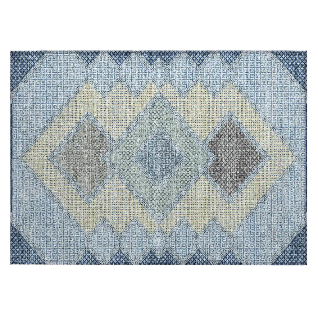 Machine Washable Indoor/outdoor Geo Modern Chantille Rug - Denim - 1'8" X 2'6"