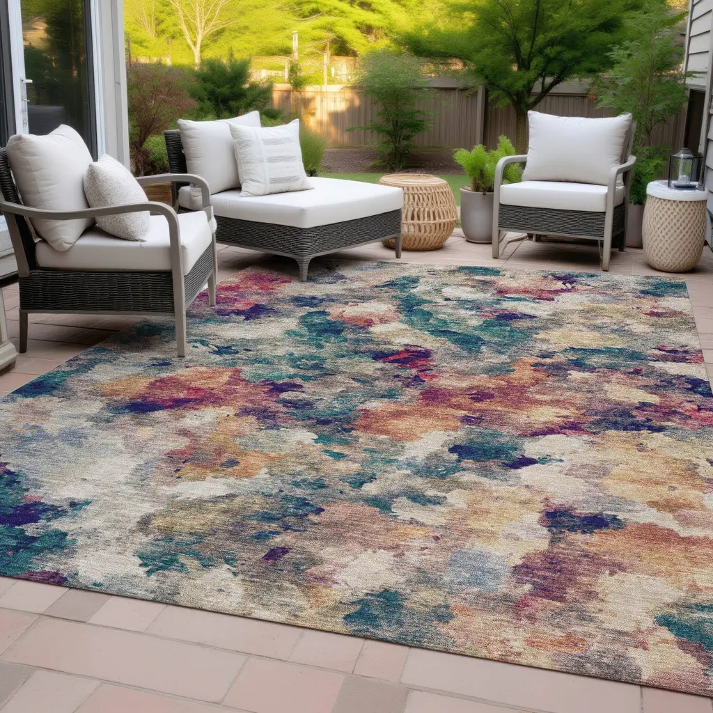 Immerse your space in a world of vibrant color and creativity with our transitional masterpiece, showcasing bold abstract paint splashes that dance across its surface. Engineered with an ultra-thin, flat weave and a clever non-skid backing, there's no need for an extra pad, ensuring a seamless fit indoors or outdoors thanks to its UV stabilization. Machine washable for effortless care, it's the ideal family and pet-friendly choice, making it as practical as it is visually striking. All rugs exposed to long periods of intense and direct sunlight can experience loss of color over time. Our rugs perform best in covered outdoor areas and uncovered areas with lower hours of direct sunlight. The ultra thin profile allows for fast drying after rainfall or outdoor cleaning. Larger rug sizes may not fit into a residential washing machine. They may be washed in a commercial size washing machine or hosed-off outside with mild soap and water. Air-dry, do not machine dry. While each rug already has a non-skid backing, the necessity for additional cushion or room settings with high traction areas, may require an additional rug pad.