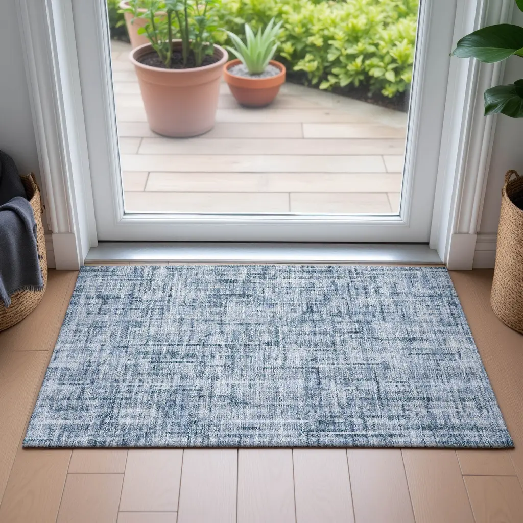 Machine Washable Indoor/outdoor Modern Crosshatch Chantille Rug - Blue - 1'8" X 2'6"