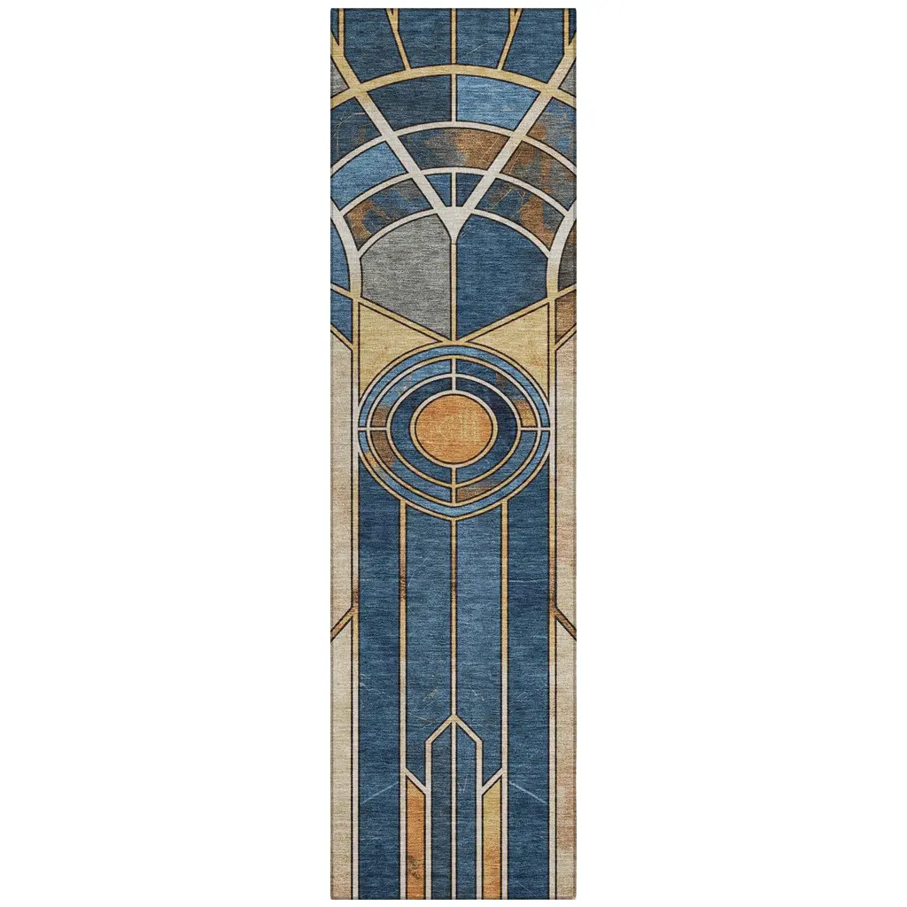 Machine Washable Indoor/outdoor Modern Mosaic Chantille Rug - Blue - 2'3" X 7'6"
