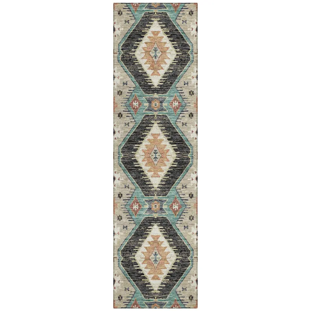 Machine Washable Indoor/outdoor Southwest Global Chantille Rug - Black - 2'3" X 7'6"