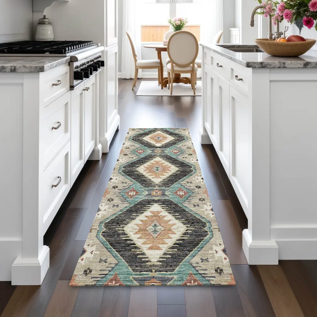 Embrace the captivating charm of transitional style with a Moroccan twist, showcased in its large diamond shapes that create a handcrafted pattern, adding a global touch to any space. Its ultra-thin, flat weave ensures seamless integration, while the non-skid backing means no fuss over additional rug pads, making it practical for family and pet households. Designed with UV stabilization, this versatile piece thrives both indoors and outdoors, and its machine washable feature keeps it looking fresh all year round. All rugs exposed to long periods of intense and direct sunlight can experience loss of color over time. Our rugs perform best in covered outdoor areas and uncovered areas with lower hours of direct sunlight. The ultra thin profile allows for fast drying after rainfall or outdoor cleaning. Larger rug sizes may not fit into a residential washing machine. They may be washed in a commercial size washing machine or hosed-off outside with mild soap and water. Air-dry, do not machine dry. While each rug already has a non-skid backing, the necessity for additional cushion or room settings with high traction areas, may require an additional rug pad.