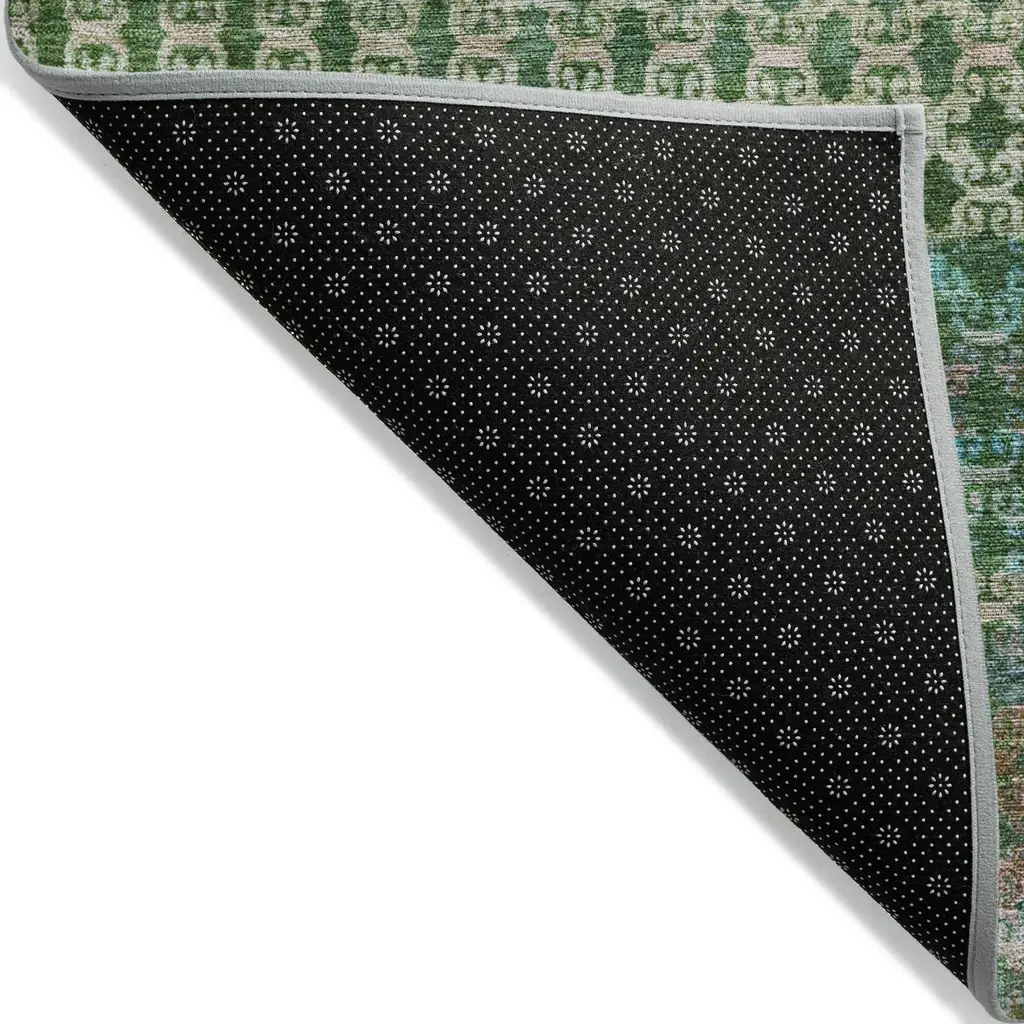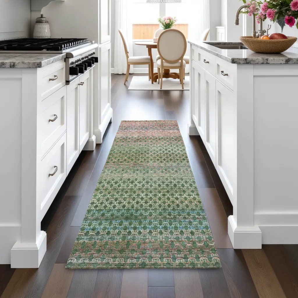 Machine Washable Indoor/outdoor Stripe Medallions Chantille Rug - Aloe - 2'3" X 7'6"