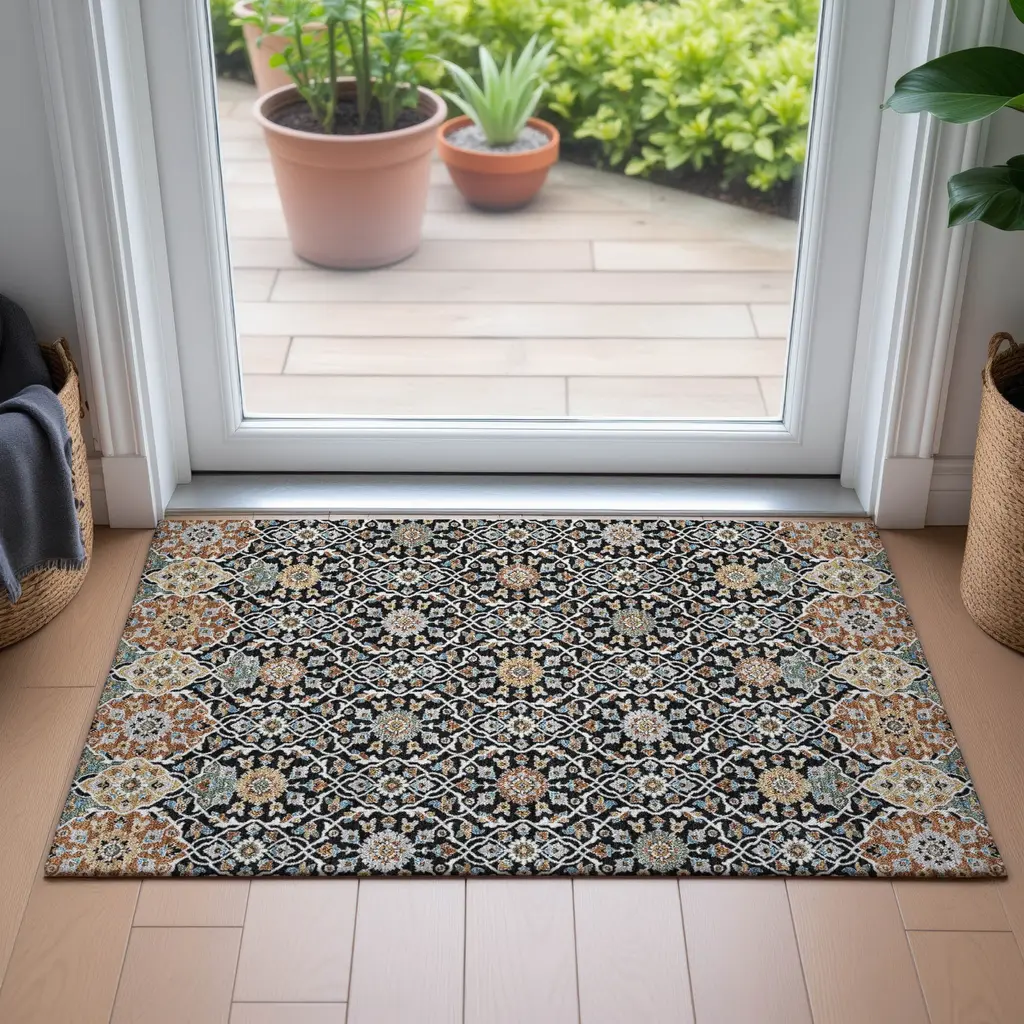 Machine Washable Indoor/outdoor Traditional Masters Chantille Rug - Black - 1'8" X 2'6"