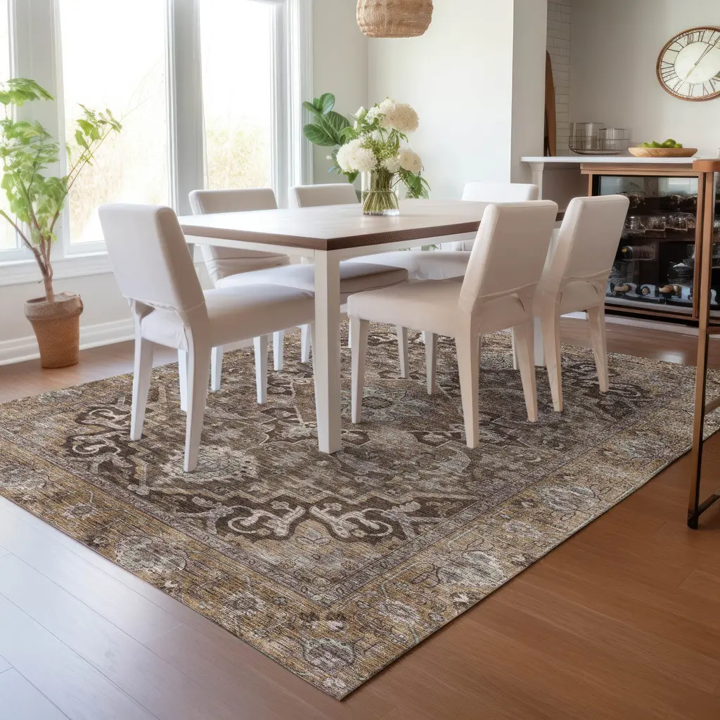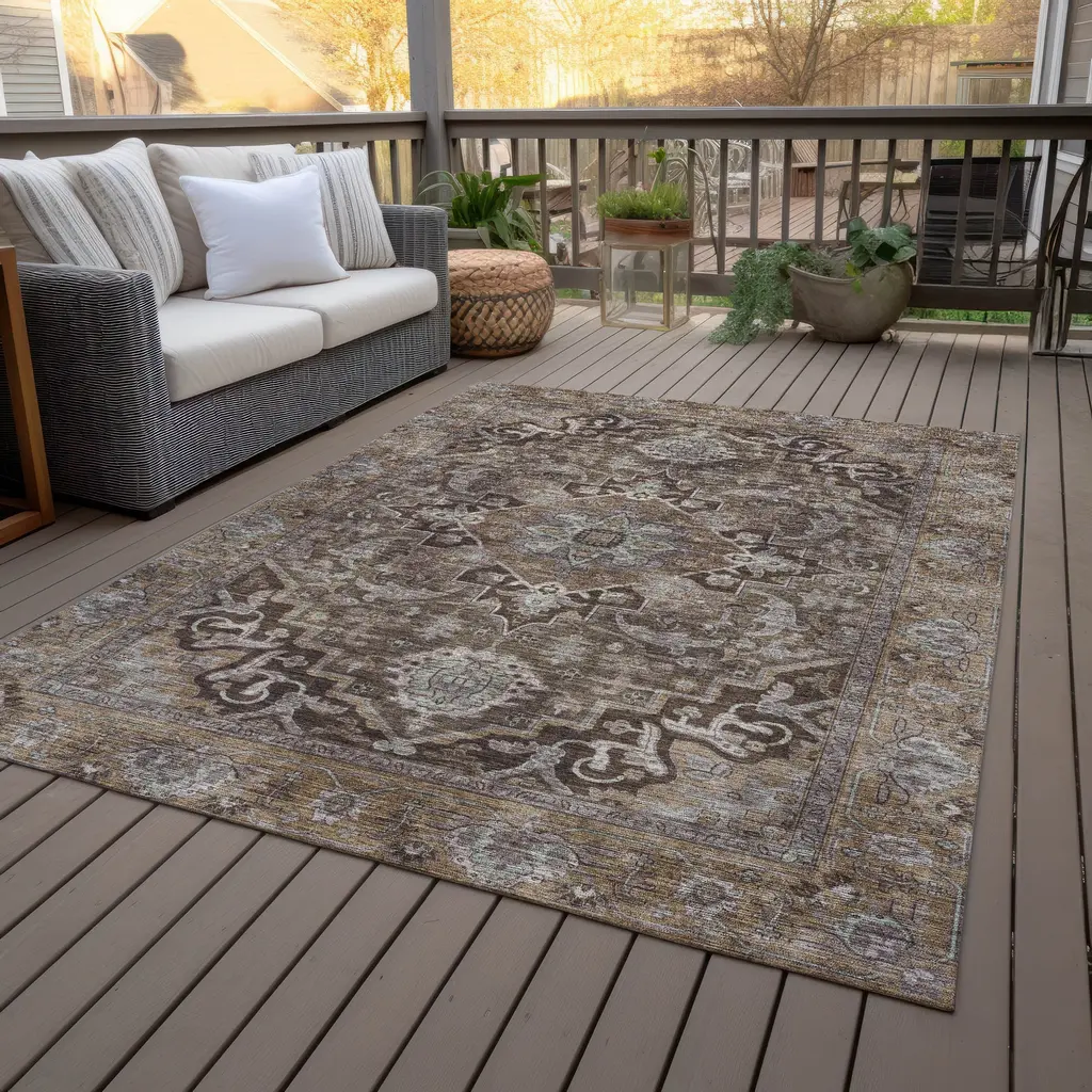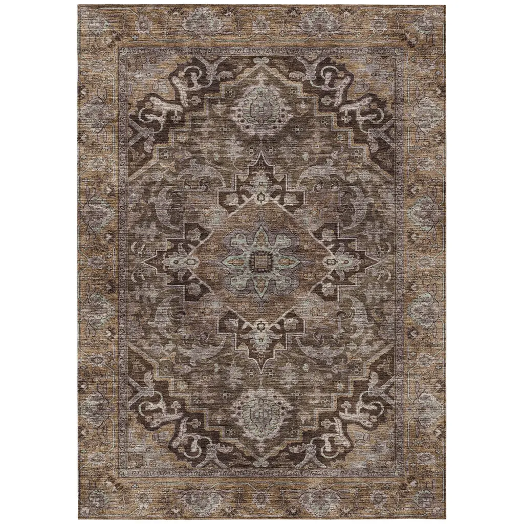 Machine Washable Indoor/outdoor Traditional Medallion Chantille Rug - Brown - 5' X 7'6"