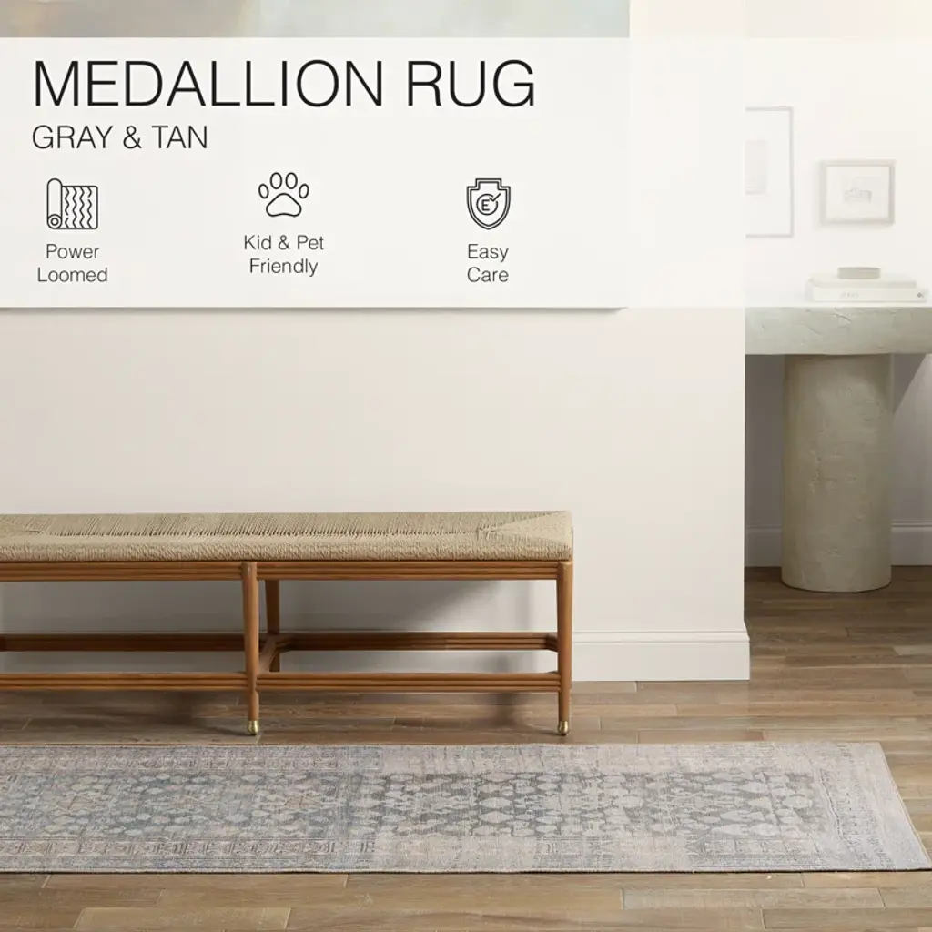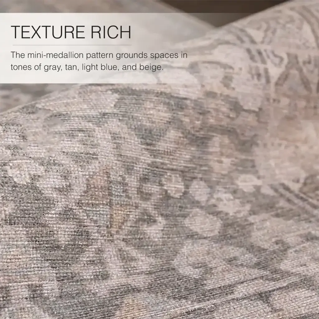 Machine Washable Jihane Oriental Machine Woven Polyester Area Rug In Gray/tan