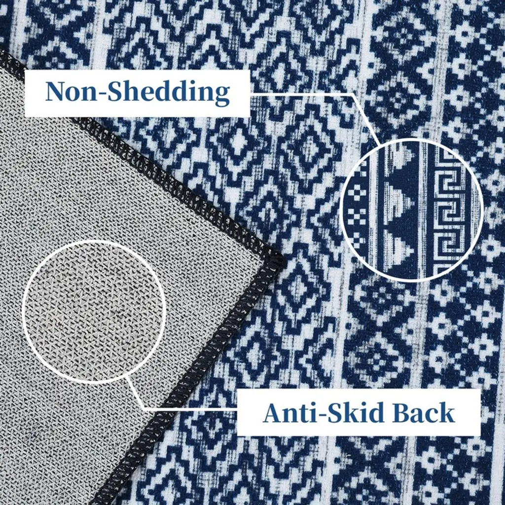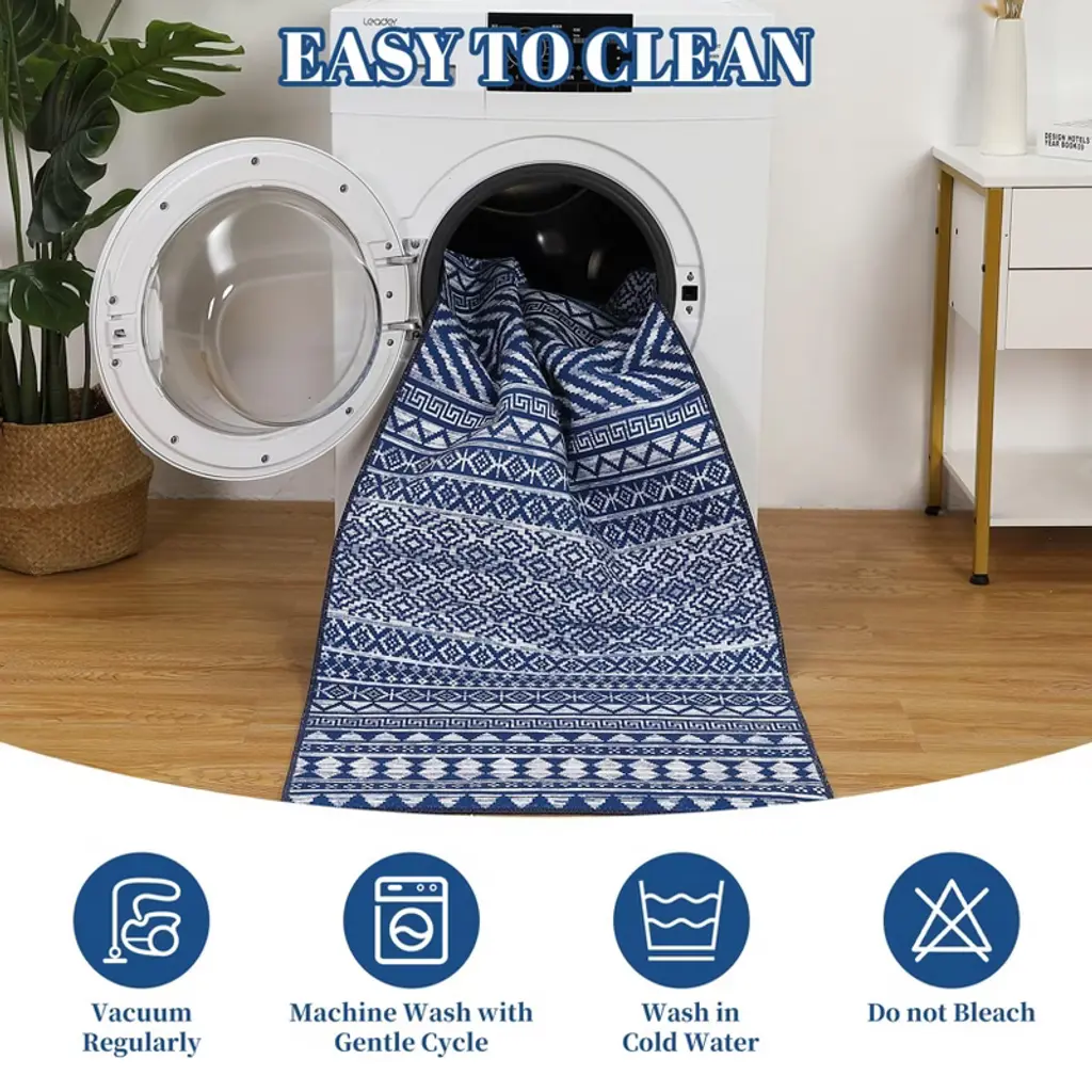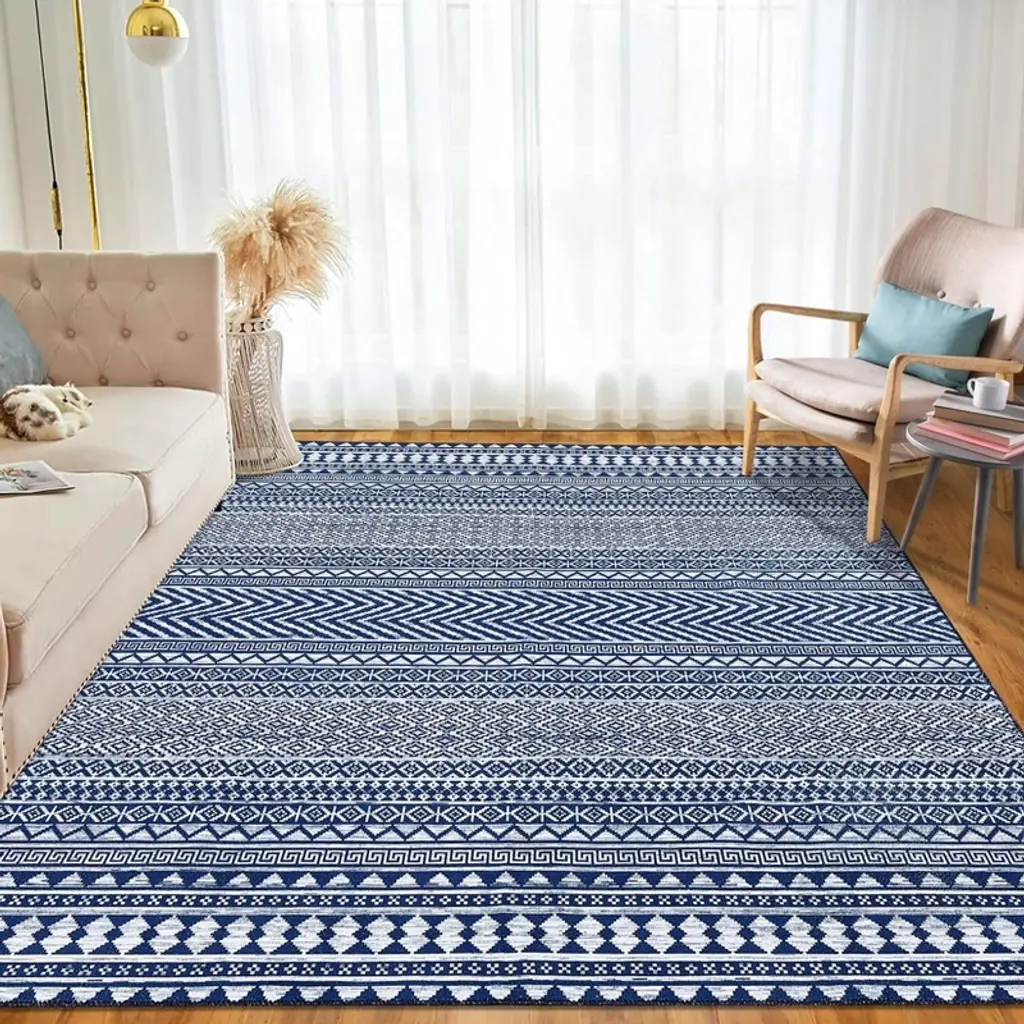 **Machine Washable Rug 5x7 ¨C Stain-Resistant Non-Slip Area Rug for Living Room & Bedroom****Key Features:**1. **Ultra-Convenient Machine Washable Design**Engineered for effortless maintenance, this innovative rug features advanced stain-resistant technology that repels spills and messes. The premium fiber-locking construction survives repeated machine washing cycles without fading, shedding or losing shape - simply toss in your washer when needed for deep cleaning or vacuum regularly for daily upkeep.2. **Stylish Home Decor Upgrade**More than just floor protection, this contemporary rug elevates your interior with its tasteful low-pile design. The versatile neutral tones and modern pattern complement any decor style, effortlessly enhancing living rooms, bedrooms, dining spaces and hallways with understated elegance.3. **Advanced Non-Slip Safety Backing**Featuring a high-performance rubberized underside, this rug stays securely anchored to prevent dangerous slips and slides. The protective backing also safeguards your floors from scratches caused by furniture legs or pet claws - ideal for active households with children and animals.4. **Heavy-Duty Construction for Daily Use**Built to withstand constant foot traffic, this durable tufted polyester rug resists crushing, matting and wear. The low-profile pile height prevents dirt accumulation while allowing easy furniture movement - perfect for high-traffic zones like entryways, kitchens and family rooms.5. **Versatile Multi-Room Functionality**From home offices to guest bedrooms, this adaptable 5'x7' rug brings comfort and style to any space. Use it to define conversation areas, anchor bedside spaces, or add warmth to apartments. The transitional design works equally well in modern lofts and traditional homes.**Technical Specifications:**- Dimensions: 5' x 7' (Rectangular)- Material: High-density polyester fibers- Construction: Durable tufted weave- Weight: 9.3 lbs (easy to move yet stable)- Pile Height: Low-profile (0.25"-0.5")- Backing: Non-slip rubber grip- Care: Machine washable (cold), air dry- Surface Compatibility: Safe for hardwood, tile, laminate, concrete**Care Instructions:**New rug may arrive with temporary creases that will naturally disappear:1. Unroll completely upon arrival2. Walk across surface to help flatten3. Use heavy books on edges if needed4. Creases typically vanish within 3-5 days5. Vacuum regularly to maintain appearance**Why This Rug Stands Out:**? **Hassle-Free Cleaning** - Handles life's messes with ease? **Family-Safe Design** - Secure for kids and pets? **Long-Lasting Quality** - Maintains beauty wash after wash? **Designer Appeal** - Complements any color scheme? **Practical Comfort** - Soft yet durable for daily lifeIdeal for those seeking a **stylish, low-maintenance** rug that combines **practical functionality** with **designer aesthetics** - elevating your space while standing up to real-life demands. The perfect blend of form and function for modern living.