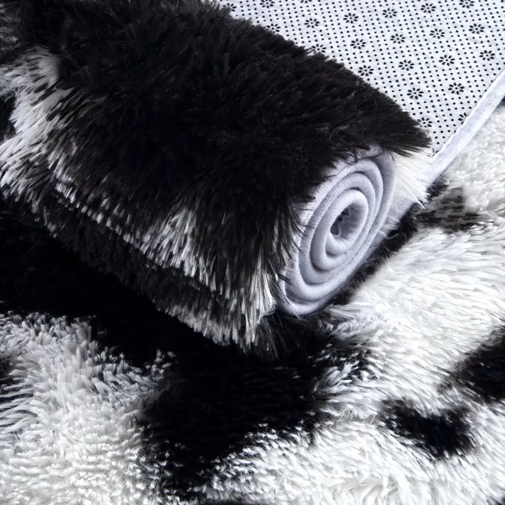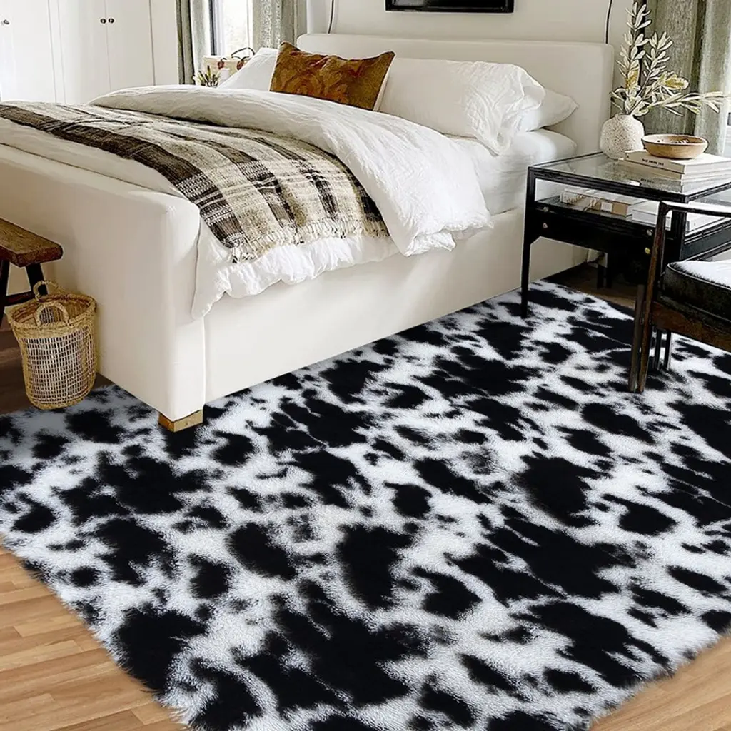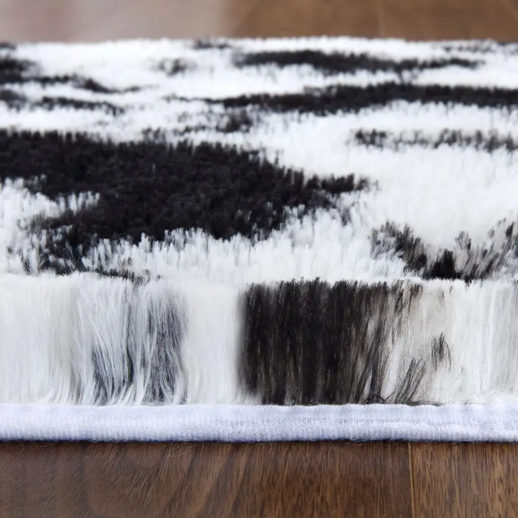 Machine Washable Rug Soft Fluffy Shaggy Area Rug Non Slip Ultra Soft Fluffy Indoor Floor Carpet For Living Room Bedroom Nursery,black White/4'x6'