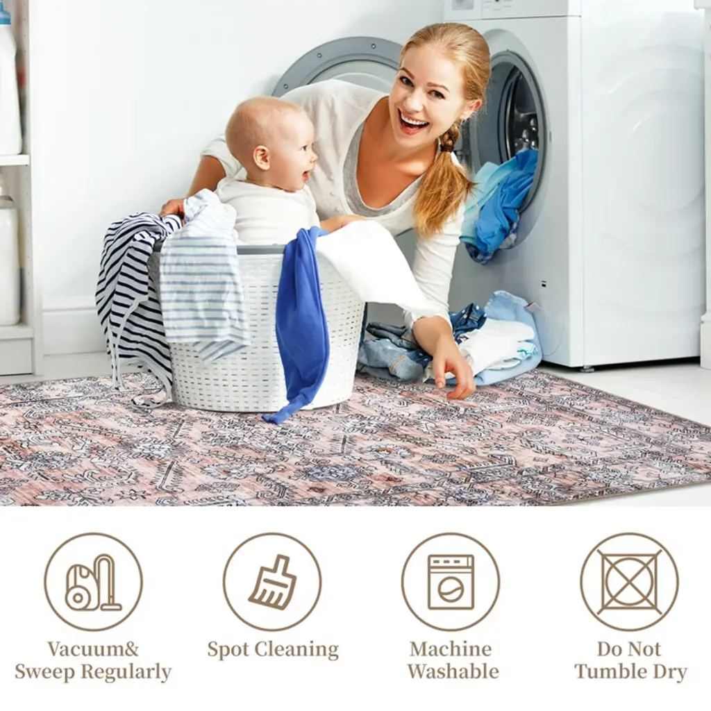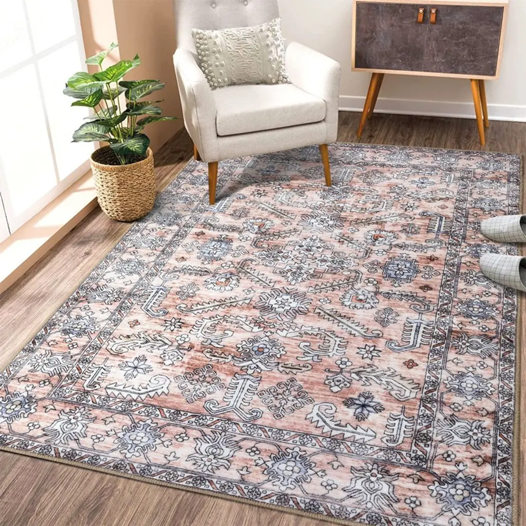 Vintage Distressed Floral Washable Area Rug – Low-Pile, Stain-Resistant & Non-Slip Pet-Friendly Carpet for Living Rooms, Bedrooms, and High-Traffic Homes Description: Bring rustic elegance and everyday practicality into your home with our Vintage Distressed Floral Washable Area Rug. Featuring a beautifully weathered floral pattern in muted tones, this rug adds a touch of timeless charm to living rooms, bedrooms, or hallways, while its durable, family-friendly design stands up to pets, kids, and daily life. Key Features & Benefits: • Vintage Distressed Floral Artistry – Faded blooms and antique-inspired details create a cozy, lived-in aesthetic perfect for farmhouse, shabby chic, or eclectic interiors. • Plush Low-Pile Comfort – Soft polyester fibers offer gentle cushioning underfoot, ideal for barefoot mornings, playtime, or lounging with pets. • Built for Busy Homes – Non-Slip TPR Backing: Grips floors securely to prevent slips and shifts, even in high-traffic zones. – Stain-Resistant & Non-Shedding: Spills wipe clean effortlessly, and tightly woven fibers resist shedding for a tidy look. • Effortless Maintenance – Machine-Washable: Toss it in the washer to refresh colors and remove dirt, pet hair, or stains—no fading or shrinking. – Pet-Friendly Durability: Withstands claws, muddy paws, and accidents while staying gentle on sensitive paws. Ideal For: Living Rooms • Bedrooms • Entryways • Home Offices • Pet Areas • Apartments Care Instructions: New Rug Setup: Temporary creases will flatten when unrolled and left flat for 24–48 hours. Daily Care: Vacuum gently or spot-clean with a damp cloth. Deep Clean: Machine-wash cold on a gentle cycle; air-dry flat. Why Choose This Rug? Combining vintage character with modern resilience, this rug is a must-have for homes that value both style and function. Its machine-washable design and stain-resistant surface make it a worry-free choice for busy families, while the non-slip grip ensures safety for all. Whether you’re hosting guests or enjoying quiet moments, this rug anchors your space in comfort and charm.