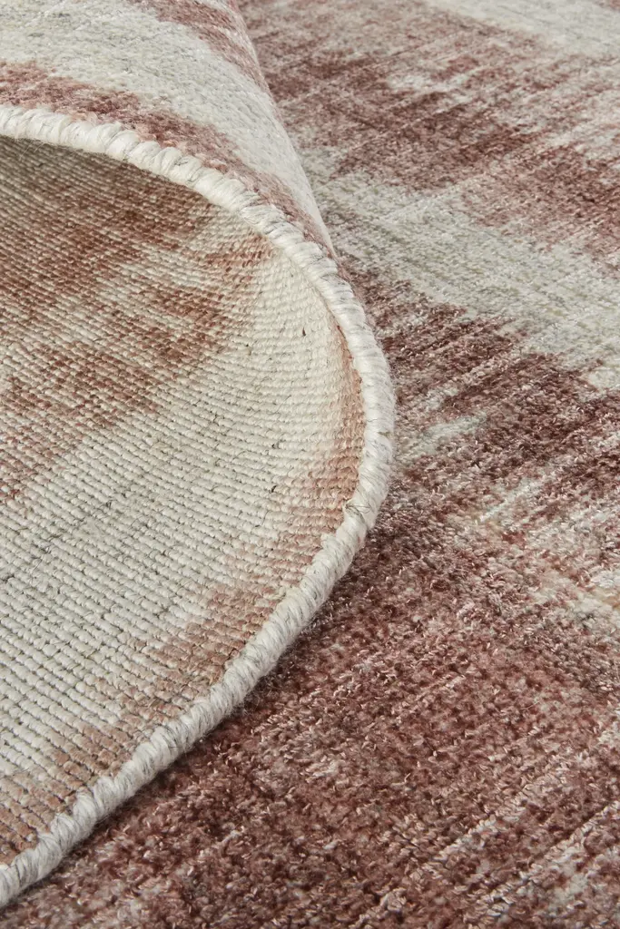 Collection: Mackay Colors: Tan, Ivory, Pink Construction: Hand Woven Material: Face: Viscose, Wool Pile: Low Pile Pile Height: 0.39" Styles: Transitional,Casual Backing: N/A Made In: India Thickness: 0.39" Price Range: $$$$$ (Premium)