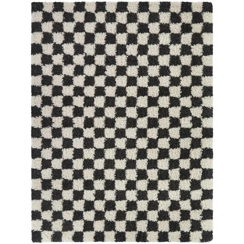Mackie Checkered Shag Area Rug - 5'3" X 7' - Charcoal