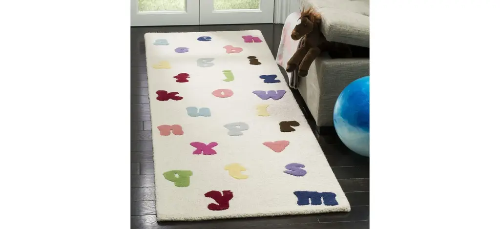 The MacTavish Kid's Rug features a colorful design with ABC's for a fun addition to your kid's room. These rugs are made with pure soft wool and hand-tufted to a cotton backing for added cushion.