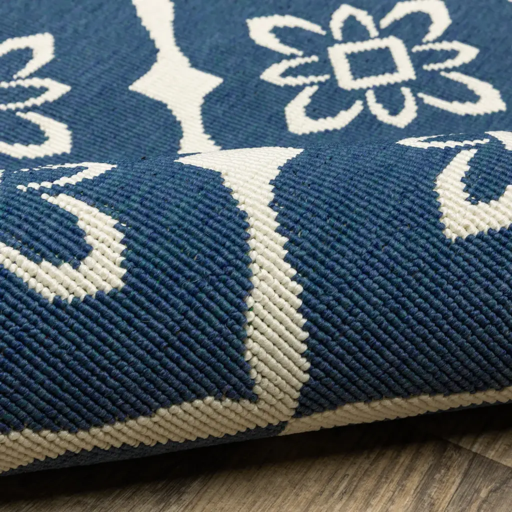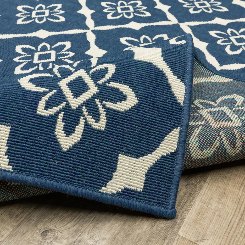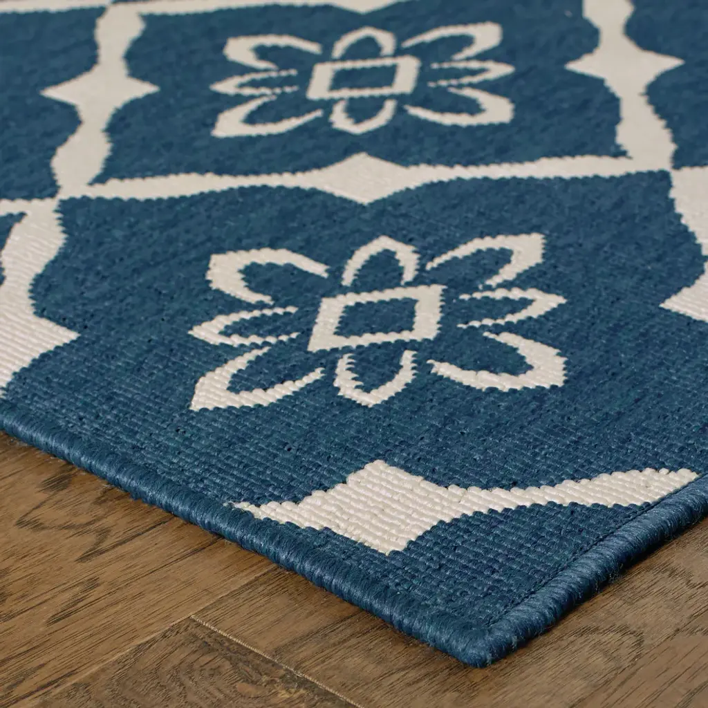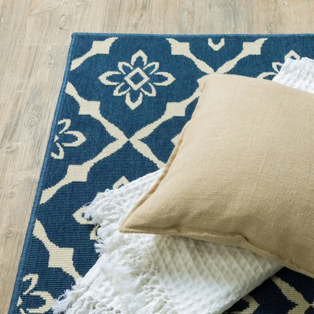 Madelina Lattice Navy And Ivory Indoor Or Outdoor Area Rug, 3'7"x5'6"