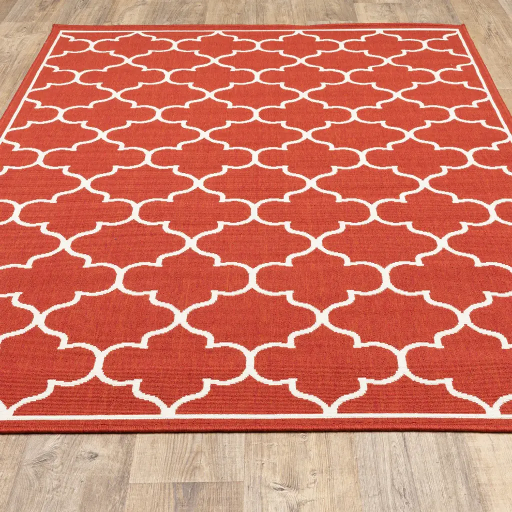 Madelina Lattice Red And Ivory Indoor Or Outdoor Area Rug, 6'7"x9'6"