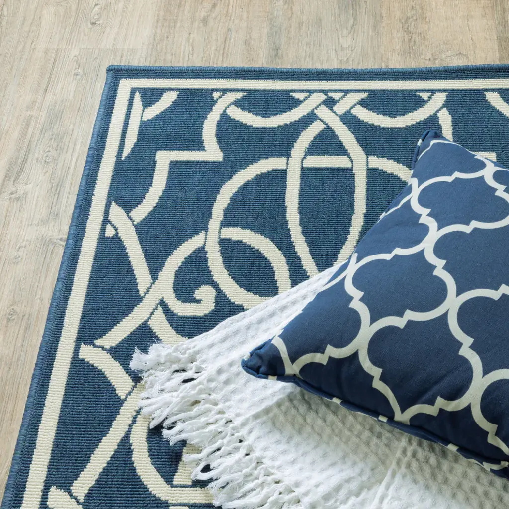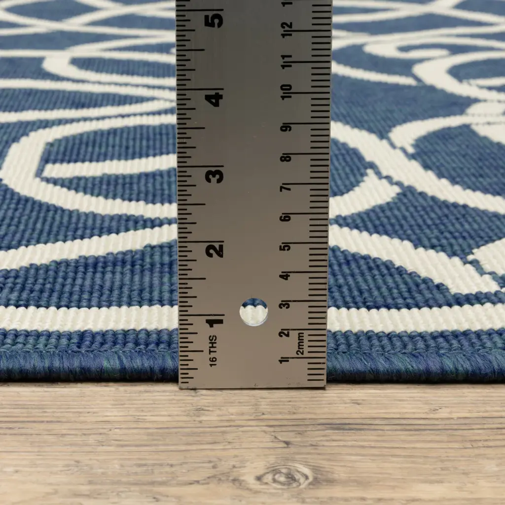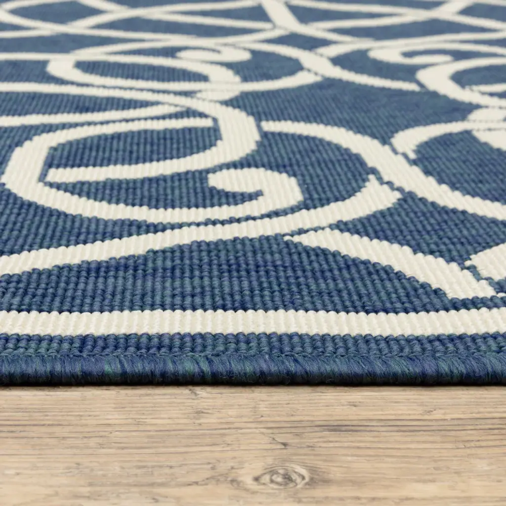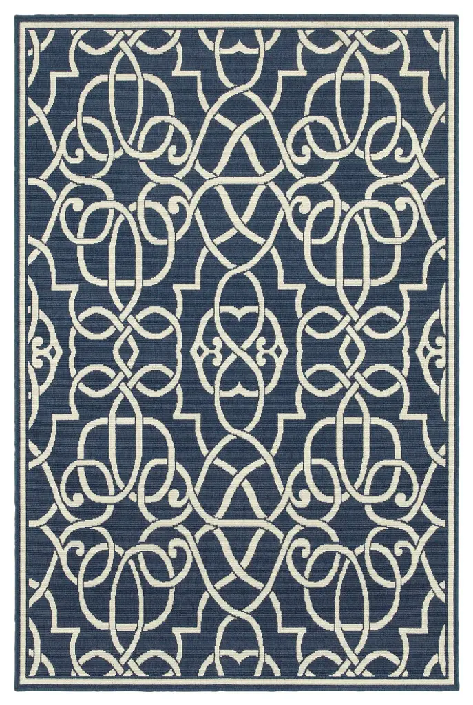 Madelina Lattice Scrollwork Navy Indoor Or Outdoor Rug, 3'7"x5'6"