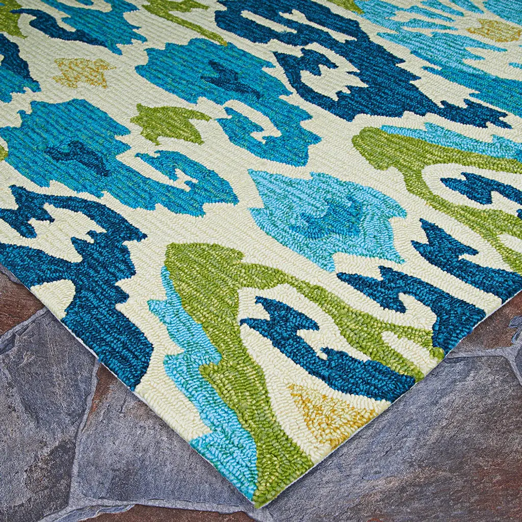 Madelina Medallion Blue And Green Indoor Or Outdoor Area Rug, 5'3"x7'6"