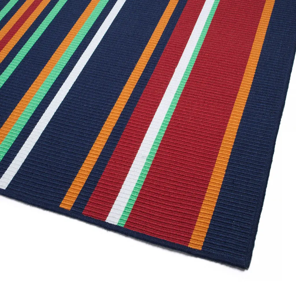 Breathe new life into any indoor or outdoor space with the vibrantly beautiful hues of Madelina. The collection features unique, tricolor yarn for added color versatility in popular shades of indigo blue, Aruba blue, Kelly green and tomato red. Boasting on-trend geometric patterns as well as classic stripes and border designs, a Madelina rug will give any area an instant wow-factor.