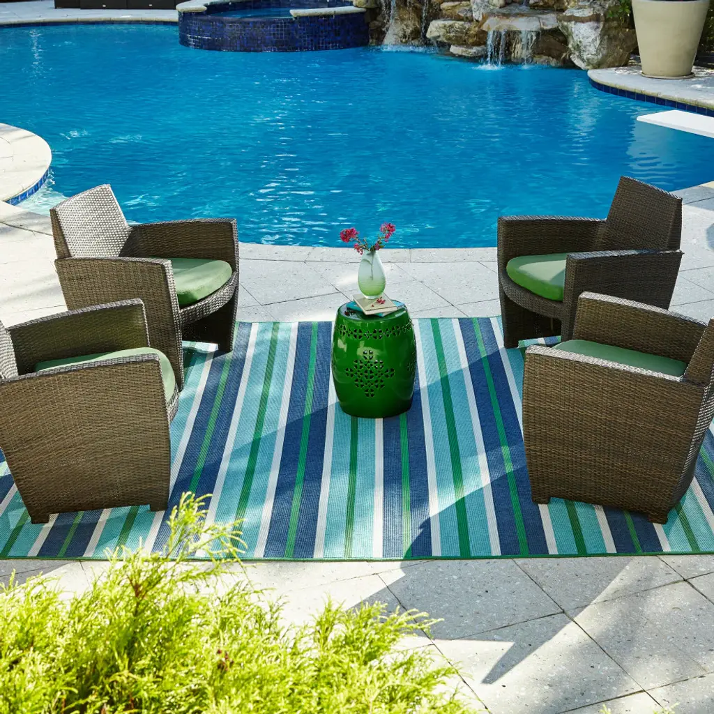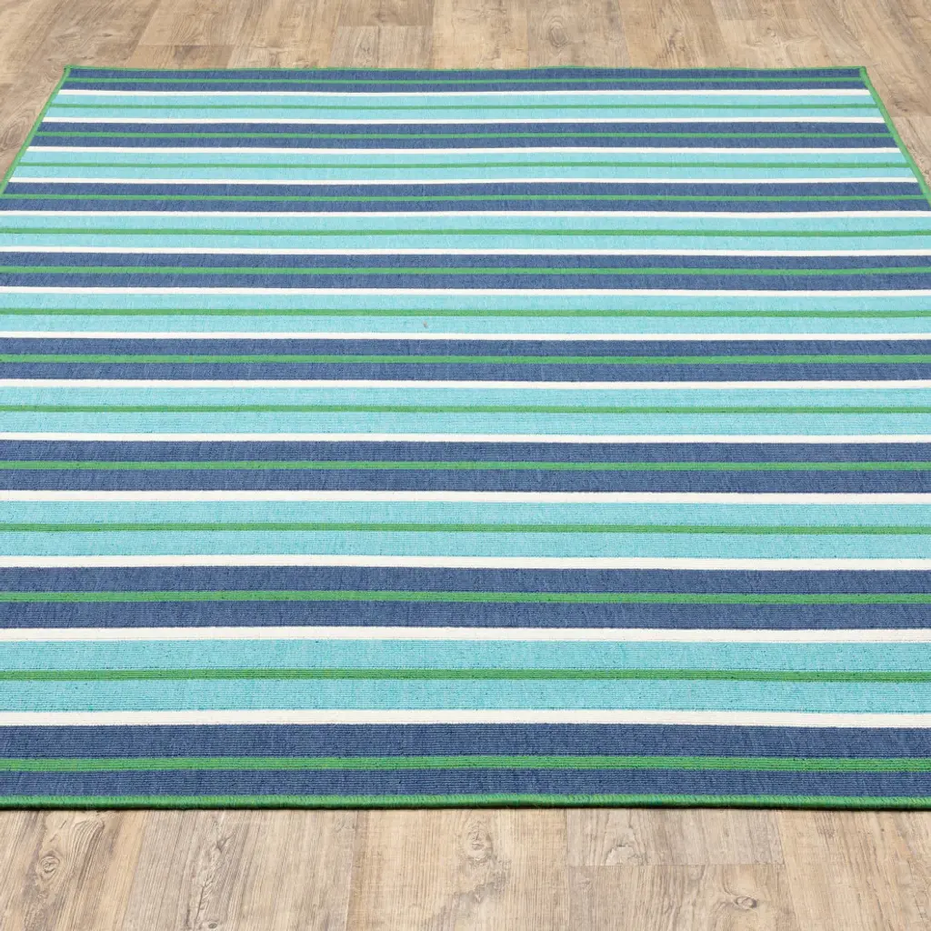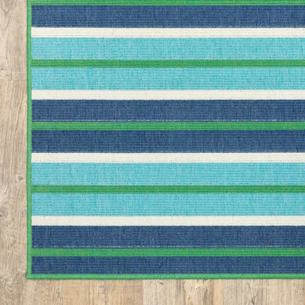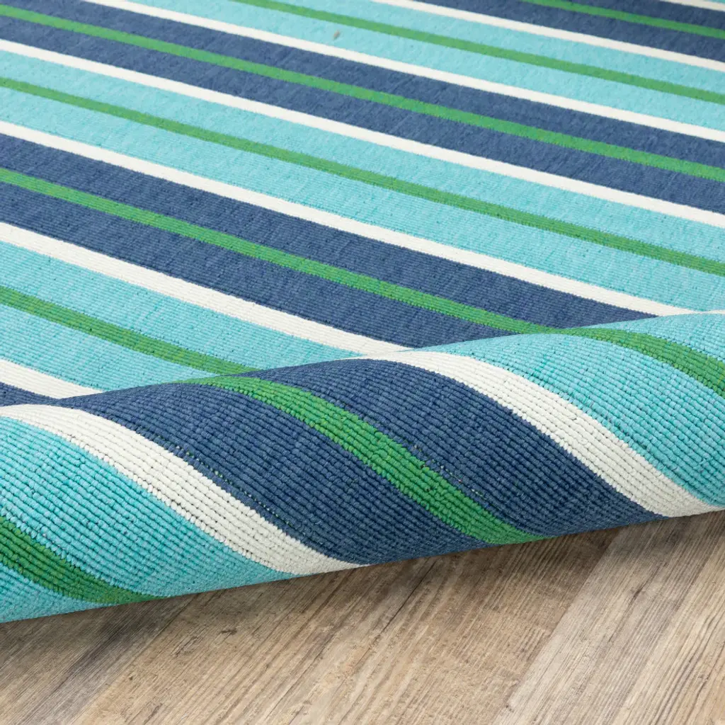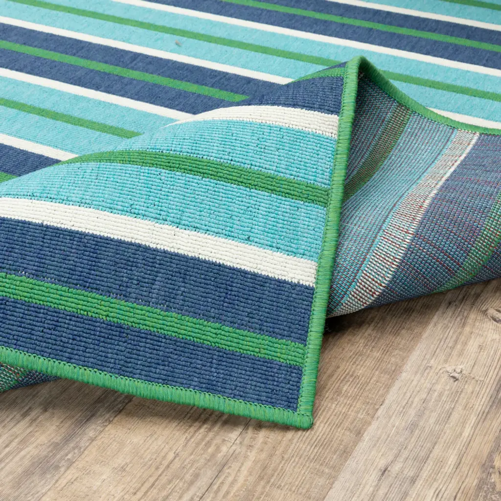 Madelina Stripe Blue And Green Indoor Or Outdoor Area Rug, 8'6"x13'