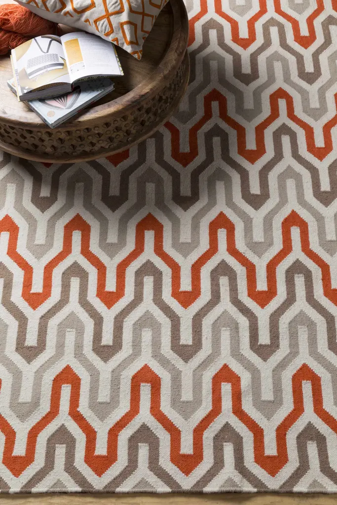 Collection: Madisonburg Colors: Cream, Medium Brown, Orange, Tan Construction: Hand Woven Material: 100% Wool Pile: No Pile Styles: Transitional Made In: India Thickness: 0.16" Price Range: $$$$$ (Most Affordable)