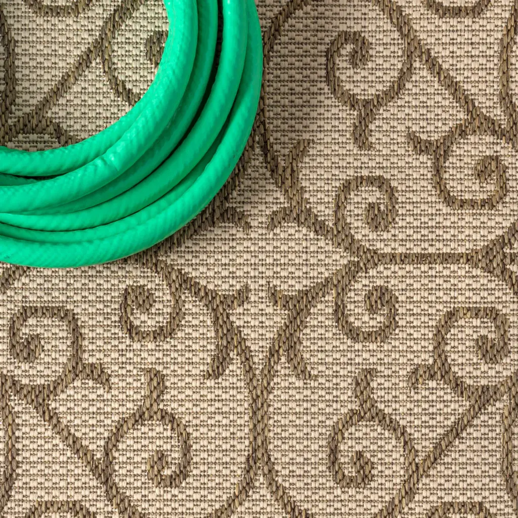 With its filigree design inspired by Spanish wrought iron, our Boho-chic rug adds eclectic style to an outdoor porch or patio. Varied tones of beige and ivory mingled with a deep brown pattern give this rug a hand-woven, vintage vibe. The flatweave design is great for high-traffic spaces indoors too. Features:• Flat-weave construction of 100% polypropylene• Beige and brown with a handwoven mingled texture• Water resistance with 0.19" pile• 100% Polypropylene• No backing, use of rug pad is recommended (sold separately)• Power Loomed in Turkey• Actual Dimension: 2 ft. 2 in. x 8 ft.• Color: Beige/Brown• Thickness measures: 0.19 in.• Available in multiple sizes and/or colorsRug Care:• Durable and easy-care - just sweep or hose down with mild soap and water• Packing and shipping may cause temporary creases in rugs, which will flatten out after a week on the floor; to expedite the process, try back-rolling your rug before laying it down, and then allow ample time for the remaining creases to relax• Please Note: Due to differences in monitors, some rug colors may vary slightly. Lengths and widths may vary from the published dimensions. Patterns may vary slightly according to shape and size selected.About us:Style your floors with JONATHAN Y. By combining fine craftsmanship and design, this New York creative studio is bringing fashion to your floors. The collection mixes sustainable organic materials, vibrant colors and trend worthy styles to create JONATHAN Y''s distinctive catalog of rugs.