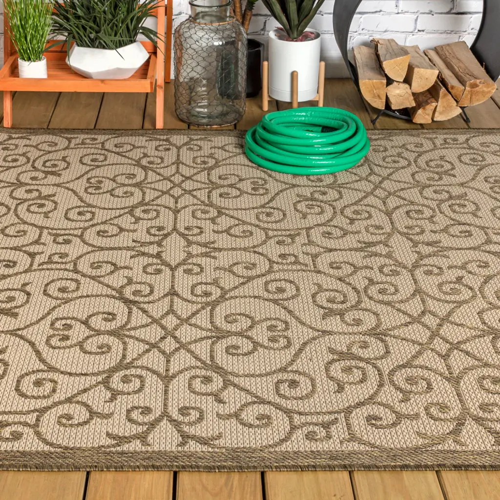 Madrid Vintage Filigree Textured Weave Indoor/outdoor, Beige/brown, 8 X 10