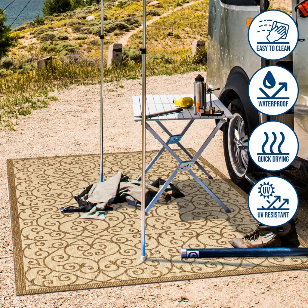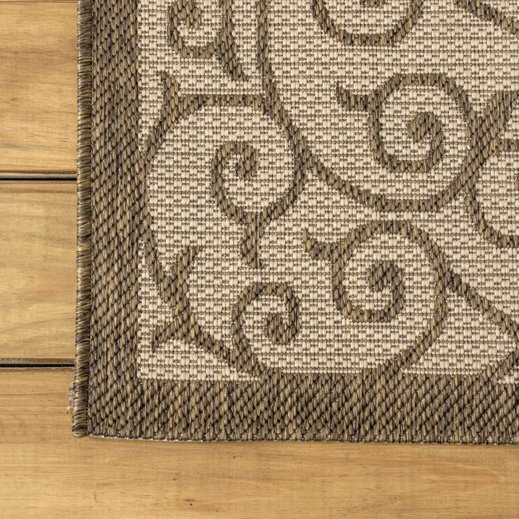 With its filigree design inspired by Spanish wrought iron, our Boho-chic rug adds eclectic style to an outdoor porch or patio. Varied tones of beige and ivory mingled with a deep brown pattern give this rug a hand-woven, vintage vibe. The flatweave design is great for high-traffic spaces indoors too. Features:• Flat-weave construction of 100% polypropylene• Beige and brown with a handwoven mingled texture• Water resistance with 0.19" pile• 100% Polypropylene• No backing, use of rug pad is recommended (sold separately)• Power Loomed in Turkey• Actual Dimension: 7ft. 9 in. x 10 ft.• Color: Beige/Brown• Thickness measures: 0.19 in.• Available in multiple sizes and/or colorsRug Care:• Durable and easy-care - just sweep or hose down with mild soap and water• Packing and shipping may cause temporary creases in rugs, which will flatten out after a week on the floor; to expedite the process, try back-rolling your rug before laying it down, and then allow ample time for the remaining creases to relax• Please Note: Due to differences in monitors, some rug colors may vary slightly. Lengths and widths may vary from the published dimensions. Patterns may vary slightly according to shape and size selected.About us:Style your floors with JONATHAN Y. By combining fine craftsmanship and design, this New York creative studio is bringing fashion to your floors. The collection mixes sustainable organic materials, vibrant colors and trend worthy styles to create JONATHAN Y''s distinctive catalog of rugs.