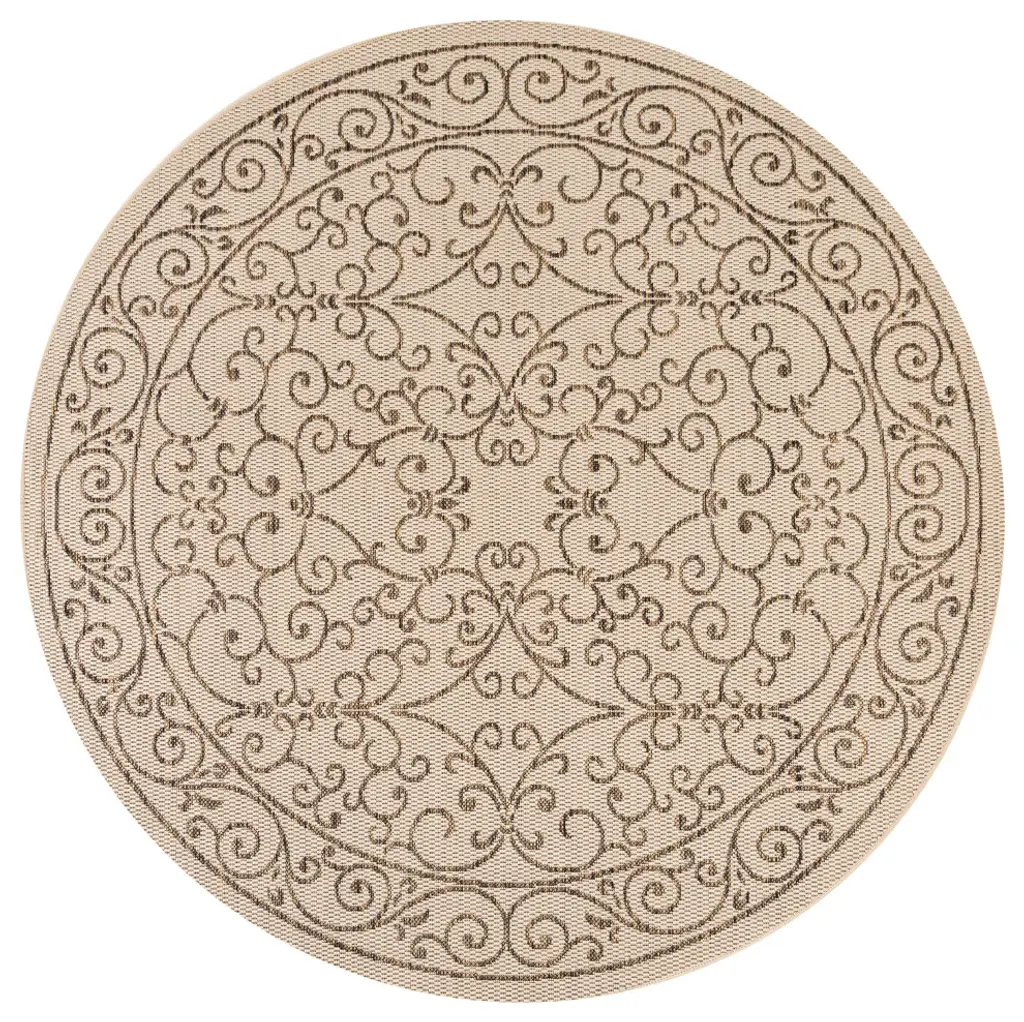 Madrid Vintage Filigree Textured Weave Indoor/outdoor, Black/khaki, 6'7" Round