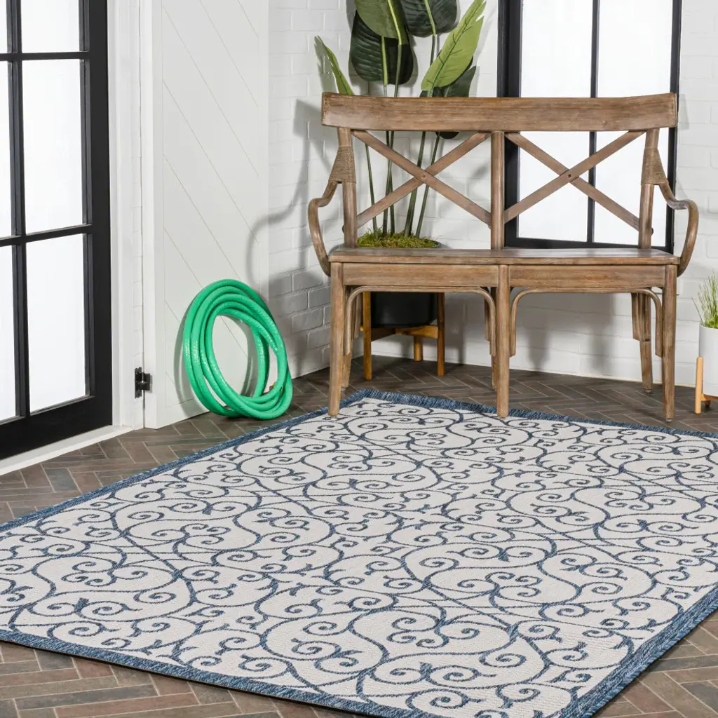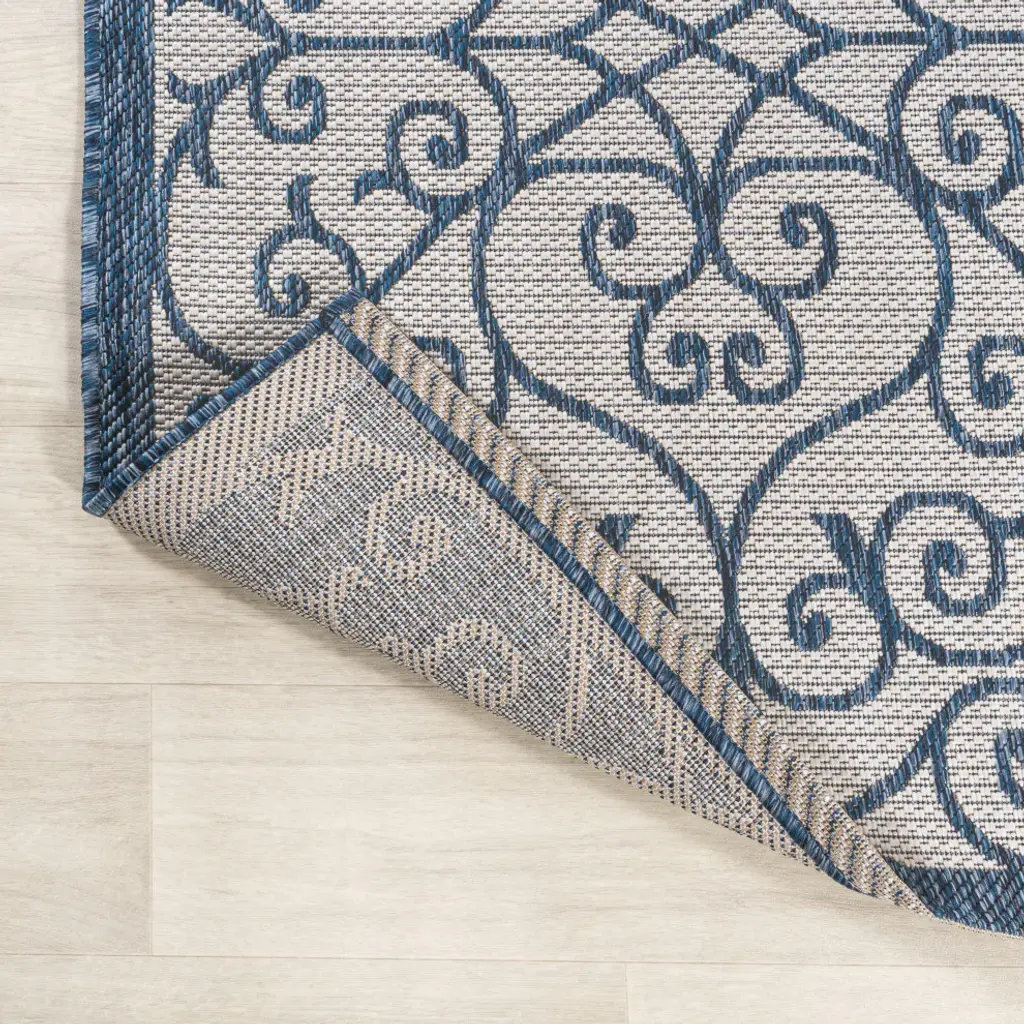 With its filigree design inspired by Spanish wrought iron, our Boho-chic rug adds eclectic style to an outdoor porch or patio. Varied tones of beige and brown mingled with a black pattern give this rug a hand-woven, vintage vibe. The flatweave design is great for high-traffic spaces indoors too.Features:• Flat-weave construction of 100% polypropylene• Light gray and black with a handwoven mingled texture• Water resistance with 0.19" pile• 100% Polypropylene• No backing, use of rug pad is recommended (sold separately)• Power Loomed in Turkey• Actual Dimension: 3 ft. 11 in. x 6 ft.• Color: Blue/Cream• Thickness measures: 0.19 in.• Available in multiple sizes and/or colorsRug Care:• Vacuum regularly and spot clean as needed; avoid direct and continuous exposure to sunlight; use brushless vacuum; remove spills immediately; if liquid, blot with clean, undyed cloth by pressing firmly around the spill to absorb as much as possible; for hard to remove stains, professional rug cleaning is recommended; store in a dry, well ventilated area and rotate for consistent wear• Packing and shipping may cause temporary creases in rugs, which will flatten out after a week on the floor; to expedite the process, try back-rolling your rug before laying it down, and then allow ample time for the remaining creases to relax• Please Note: Due to differences in monitors, some rug colors may vary slightly. Lengths and widths may vary from the published dimensions. Patterns may vary slightly according to shape and size selected.About us:Style your floors with JONATHAN Y. By combining fine craftsmanship and design, this New York creative studio is bringing fashion to your floors. The collection mixes sustainable organic materials, vibrant colors and trend worthy styles to create JONATHAN Y''s distinctive catalog of rugs.