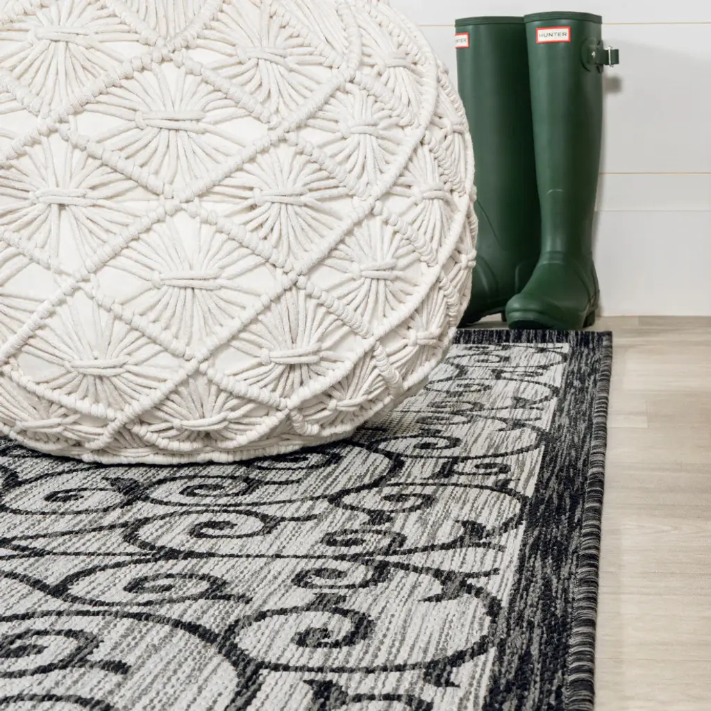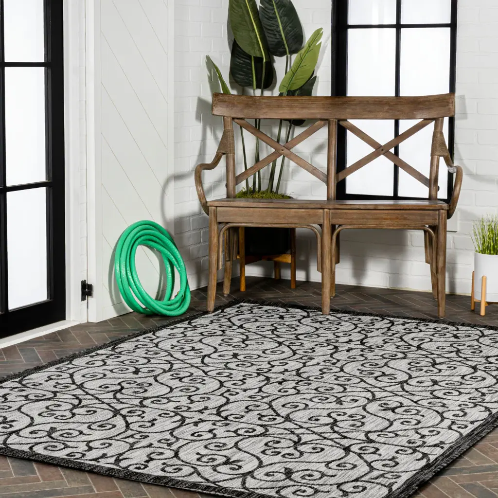 With its filigree design inspired by Spanish wrought iron, our Boho-chic rug adds eclectic style to an outdoor porch or patio. Varied tones of beige and brown mingled with a black pattern give this rug a hand-woven, vintage vibe. The flatweave design is great for high-traffic spaces indoors too.Features:• Flat-weave construction of 100% polypropylene• Soft green and cream with a handwoven mingled texture• Water resistance with 0.19" pile• 100% Polypropylene• No backing, use of rug pad is recommended (sold separately)• Power Loomed in Turkey• Actual Dimension: 9 ft. x 12 ft.• Color: Light Gray/Black• Thickness measures: 0.19 in.• Available in multiple sizes and/or colorsRug Care:• Vacuum regularly and spot clean as needed; avoid direct and continuous exposure to sunlight; use brushless vacuum; remove spills immediately; if liquid, blot with clean, undyed cloth by pressing firmly around the spill to absorb as much as possible; for hard to remove stains, professional rug cleaning is recommended; store in a dry, well ventilated area and rotate for consistent wear• Packing and shipping may cause temporary creases in rugs, which will flatten out after a week on the floor; to expedite the process, try back-rolling your rug before laying it down, and then allow ample time for the remaining creases to relax• Please Note: Due to differences in monitors, some rug colors may vary slightly. Lengths and widths may vary from the published dimensions. Patterns may vary slightly according to shape and size selected.About us:Style your floors with JONATHAN Y. By combining fine craftsmanship and design, this New York creative studio is bringing fashion to your floors. The collection mixes sustainable organic materials, vibrant colors and trend worthy styles to create JONATHAN Y''s distinctive catalog of rugs.