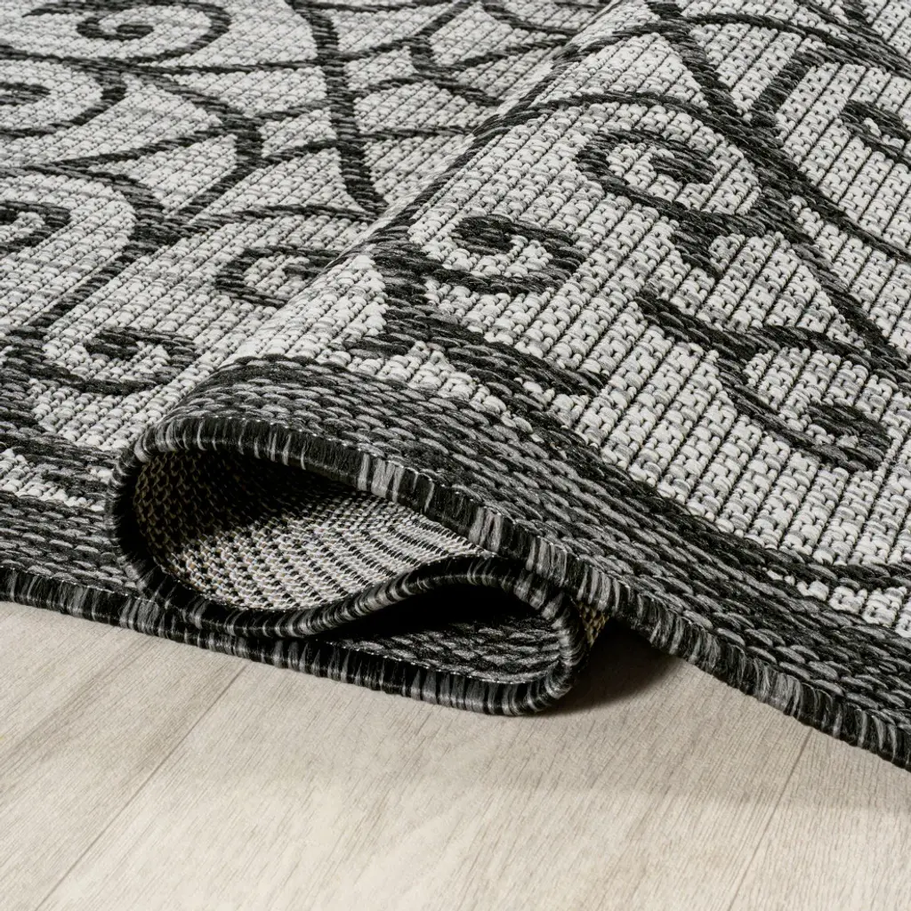 Madrid Vintage Filigree Textured Weave Indoor/outdoor, Light Gray/black, 9 X 12