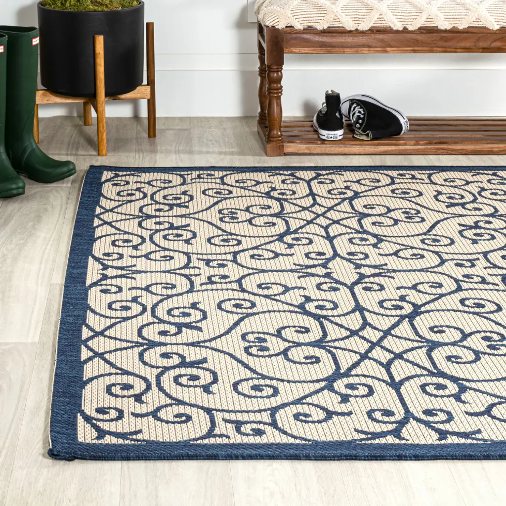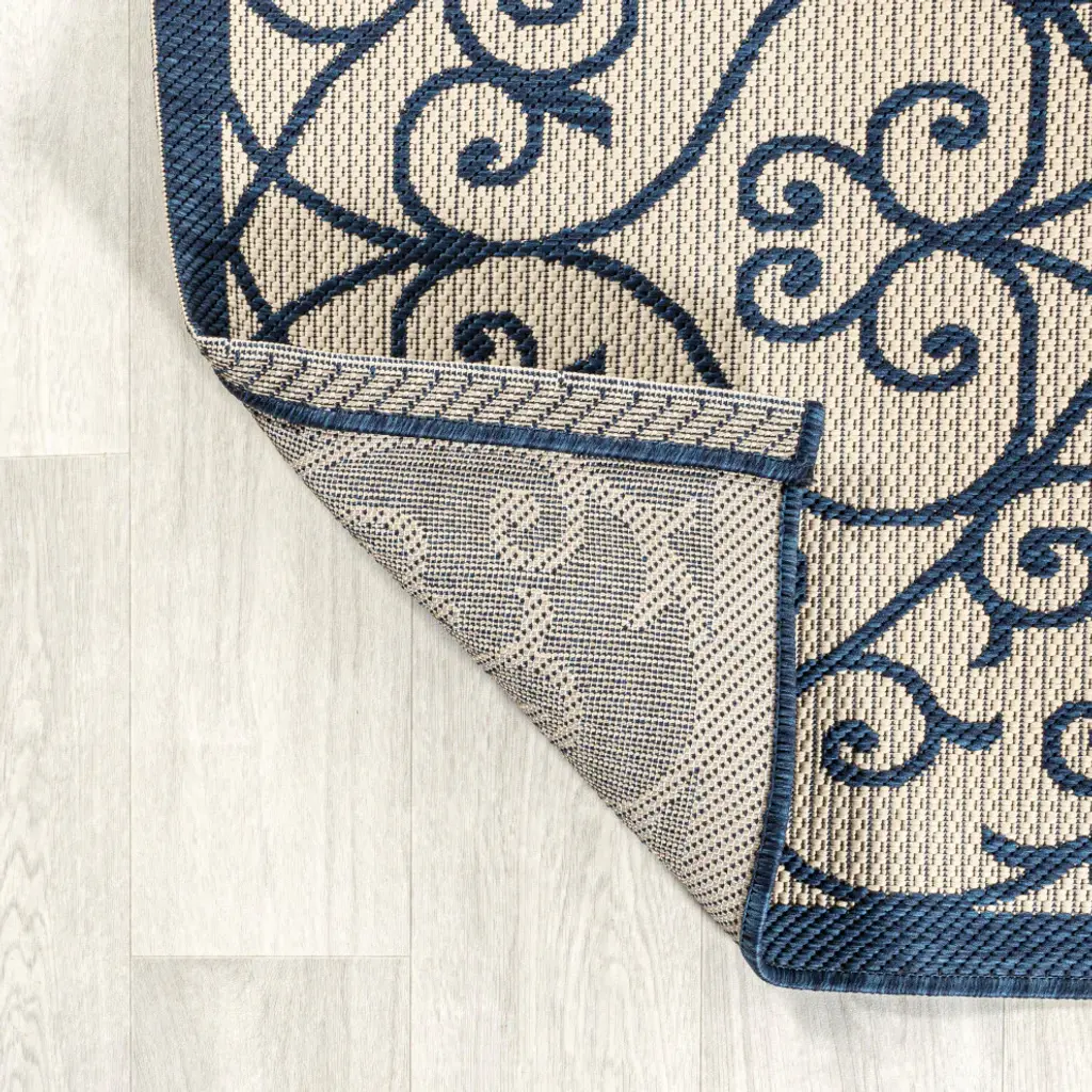 Madrid Vintage Filigree Textured Weave Indoor/outdoor, Navy/beige, 9 X 12