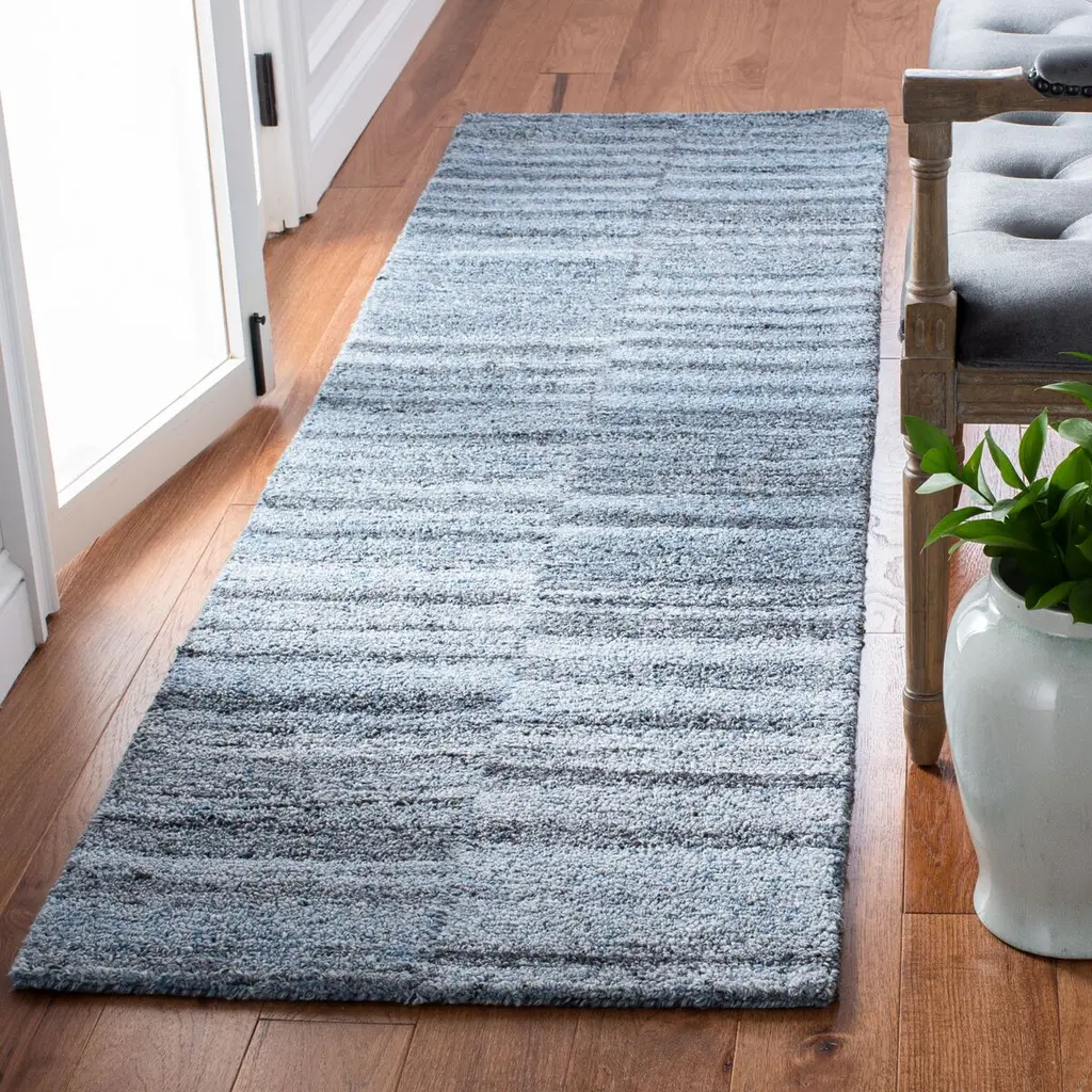 Elevate your space with the understated elegance of our 4' x 6' contemporary area rug, crafted with precision in India. This small rectangle rug boasts a clean geometric pattern, showcasing alternating stripes in a sophisticated grey and charcoal palette that promises to complement any modern decor. Each rug is meticulously hand-tufted, a testament to its artisanal quality, employing a blend of 65% wool for warmth, 25% viscose for a subtle sheen, and 10% nylon for durability. Standing at a comfortable height of 3/8", this rug offers a plush underfoot experience without compromising on style. While it's not machine washable, maintaining its beauty is effortless?regular vacuuming will keep it looking pristine. Please note it does not have slip-resistant backing, so pairing with a rug pad is recommended for safety. Elevate your living space with this touch of handcrafted luxury.