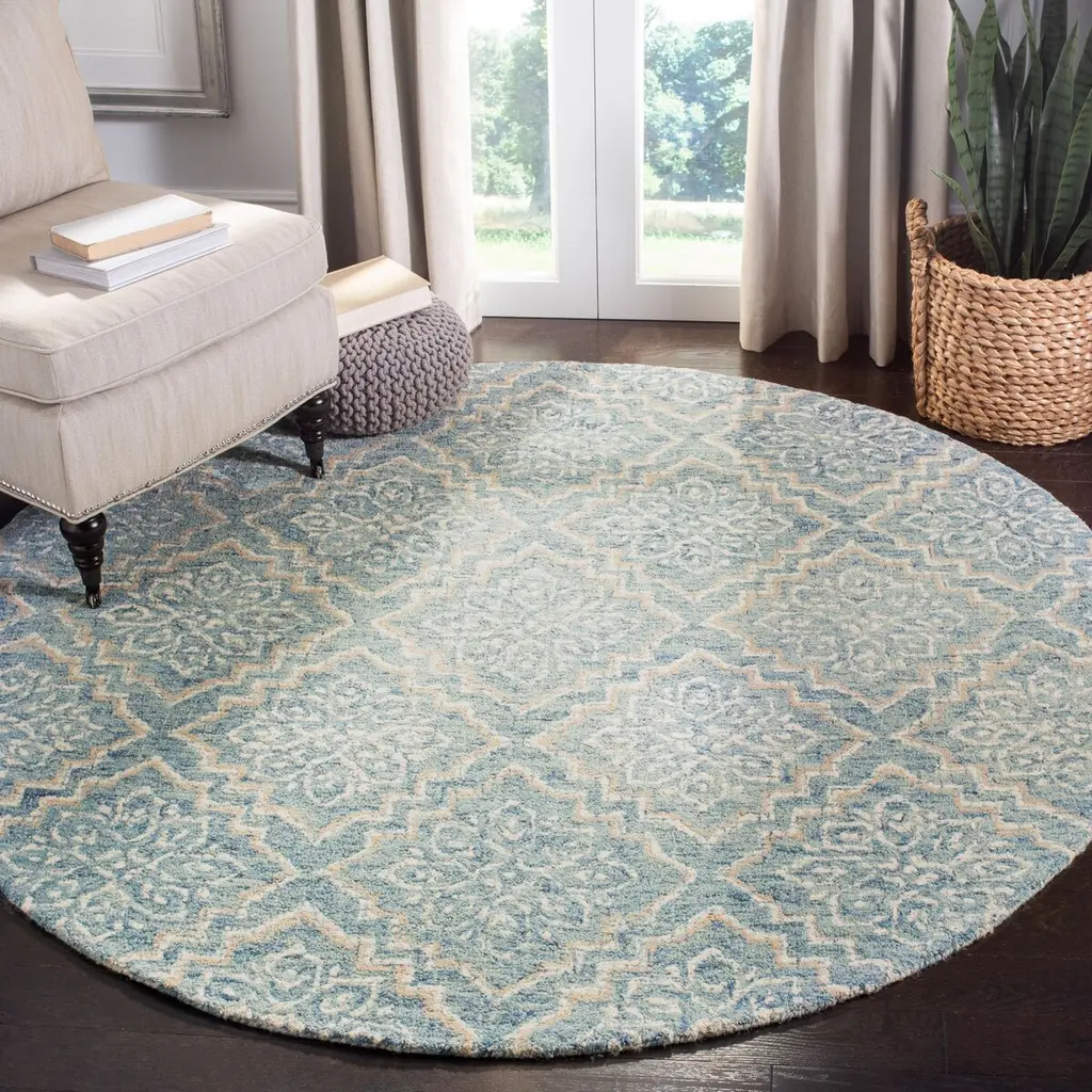 Elevate your living space with our luxurious hand-tufted wool rug, impeccably crafted in India. Measuring a grand 10' X 14', this large rectangular rug presents an exquisite pattern, blending timeless blue and grey hues for a serene and sophisticated ambiance. With a plush height of 1/2", it provides a sumptuous underfoot experience. Each rug showcases a harmonious medley of grey tones that dance across a field of tranquil blue, forming an elegant, ornate design. It's an artful accent that melds classic charm with modern versatility, perfect for any decor scheme. While beauty and craftsmanship are at the heart of this piece, please note that it is not machine washable and may require special care to maintain its stunning appearance. Also, it is not slip-resistant, and a rug pad is recommended to keep it securely in place. Experience the blend of tradition and luxury with this exquisite rug ? a timeless addition to any home.