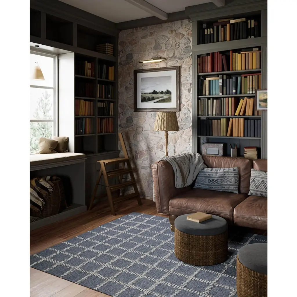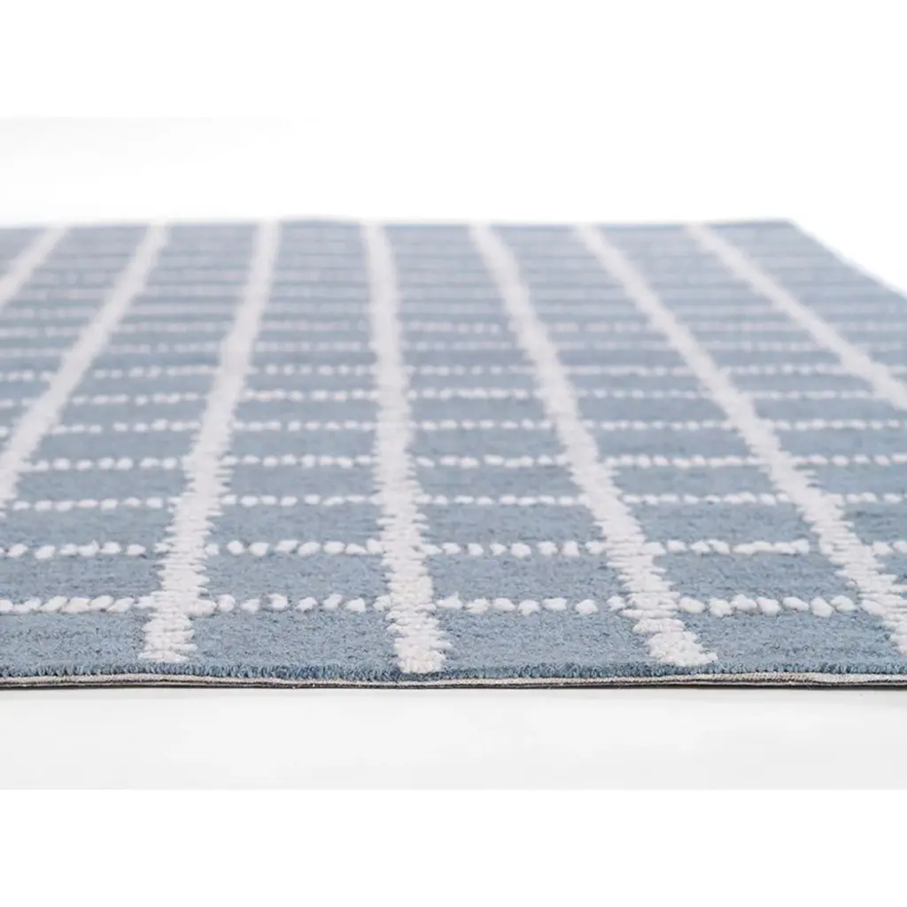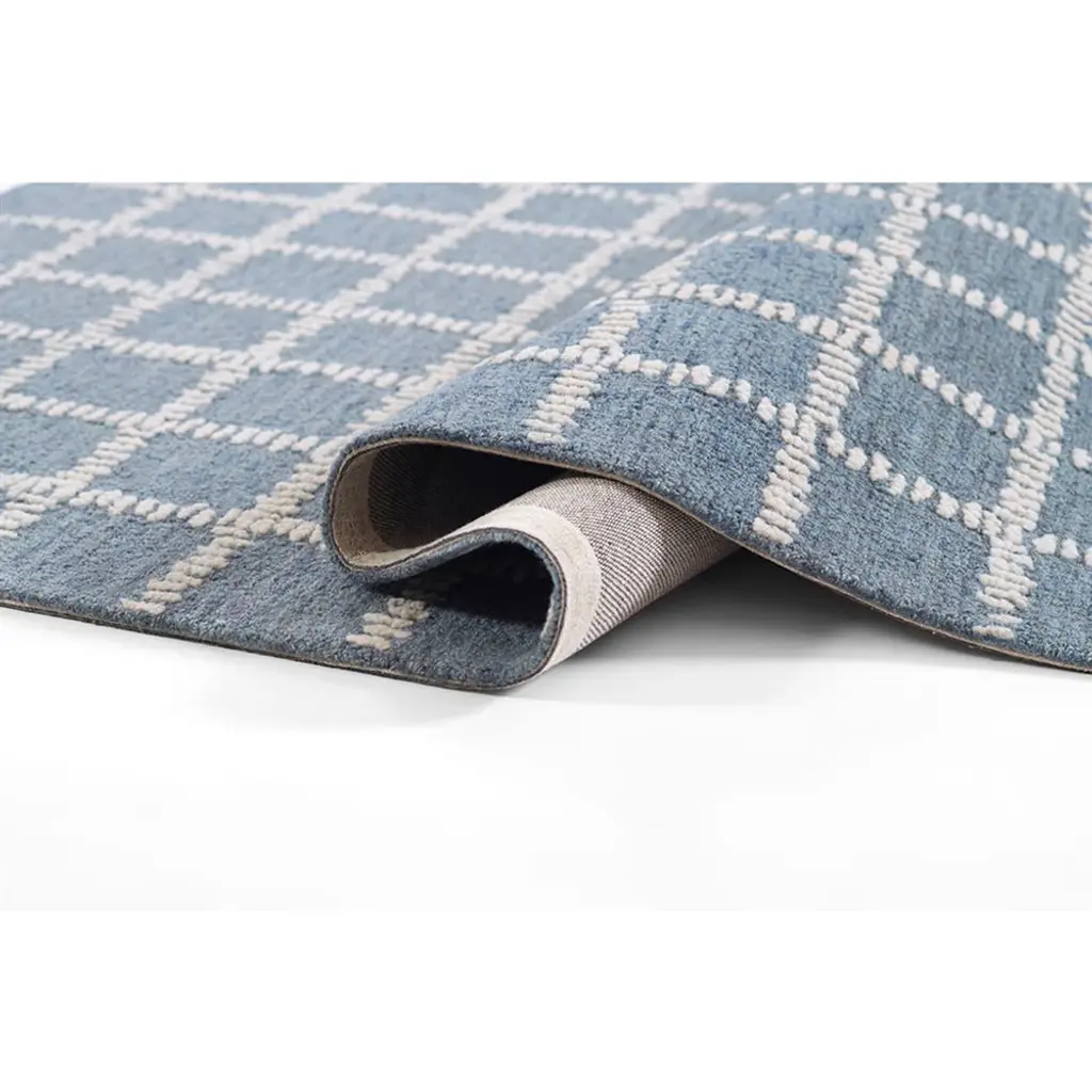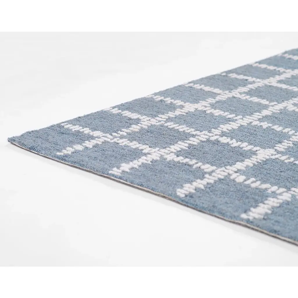 Maeve Modern Classic Blue Wool Grid Patterned Rug - 9'x12'