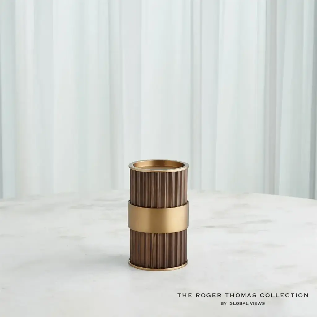 Representing Thomas enchantment with the simplest innovation for the cylindrical form, fluted column shafts referenced in the Magic Flute Collection are a hallmark of the apotheosis of Classic Greek architecture and then of the Neoclassical reinvention of Renaissance and late 18th-century French design. Made of brass and steel, each finished in bronze with brass detailing, this collection consists of two boxes, a cachepot, and candle holders. From a fashion forward perspective, Global Views offers accessories, furniture, statement lighting, and an assortment of rugs and mirrors to add beauty and joy to your home.