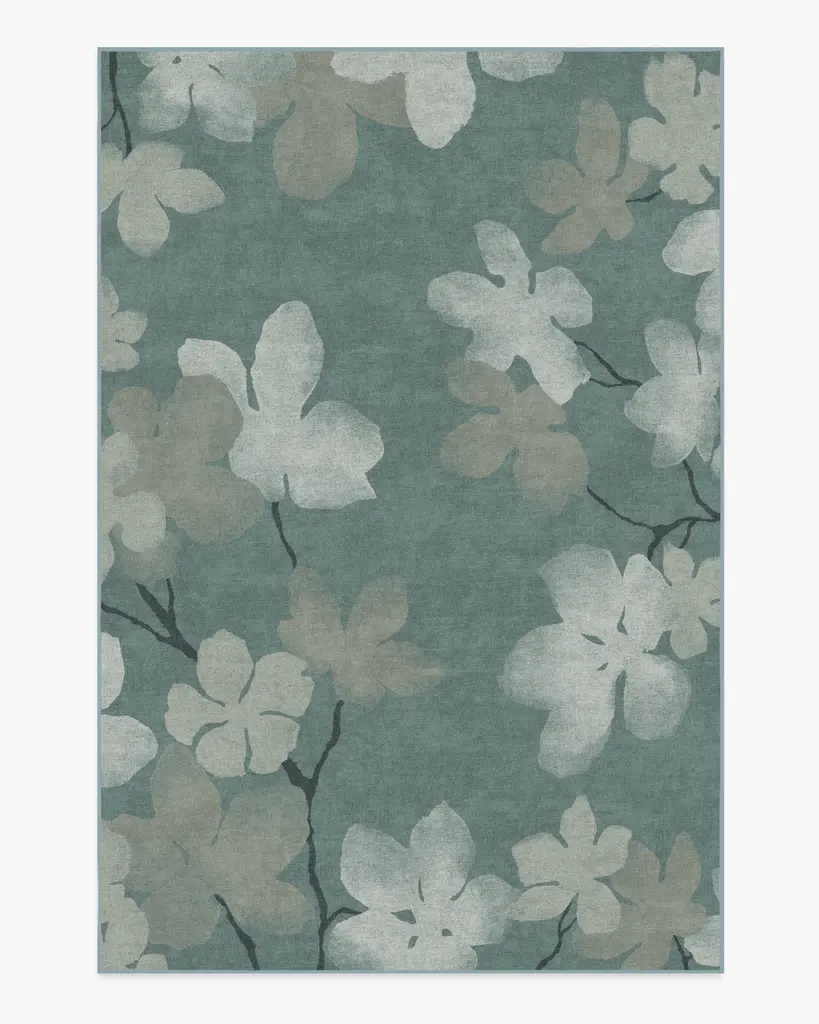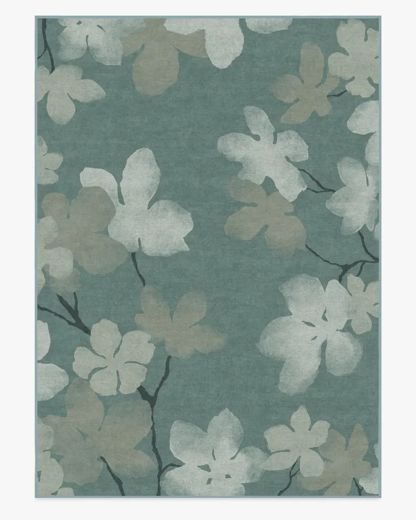 Live in full bloom with our Magnolia Teal Rug. Reminiscent of watercolor paintings, this bouquet-worthy design features large floral motifs delicately connected by intricate stems. The color palette is a cool mix of pearl and neutrals on top of a jewel-toned background. Water-resistant, stain-resistant, and machine-washable. Rug colors may vary slightly according to your device and the lighting in your space.