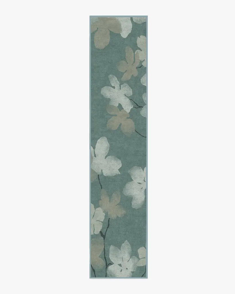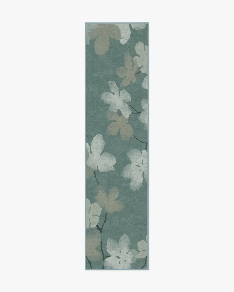 Live in full bloom with our Magnolia Teal Rug. Reminiscent of watercolor paintings, this bouquet-worthy design features large floral motifs delicately connected by intricate stems. The color palette is a cool mix of pearl and neutrals on top of a jewel-toned background. Water-resistant, stain-resistant, and machine-washable. Rug colors may vary slightly according to your device and the lighting in your space.