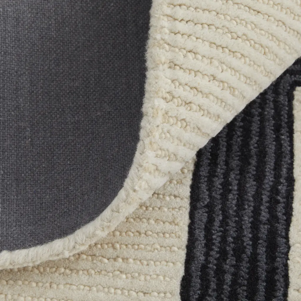 Collection: Maguire Colors: Ivory, Gray, Black Construction: Hand Tufted Material: Face: Wool, Nylon Pile: Medium Pile Pile Height: 0.62" Styles: Transitional,Industrial,Mid-Century Modern Backing: N/A Made In: India Thickness: 0.62" Price Range: $$$$$ (Affordable)