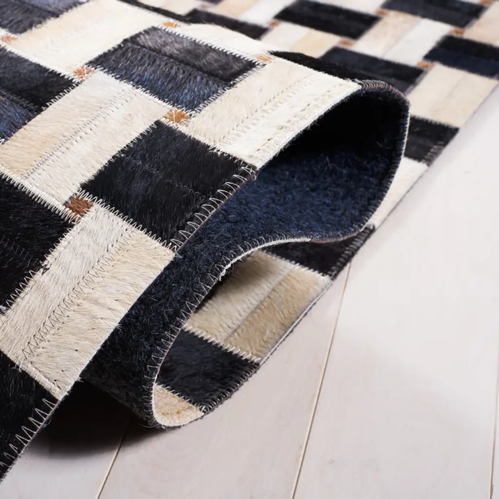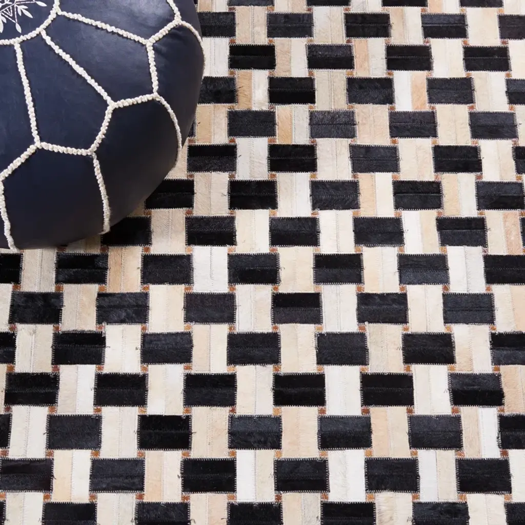 Mahsa Studio Leather Area Rug In Black / Ivory